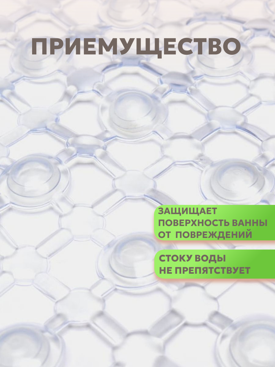 Коврик противоскользящий на присосках от Best Room для ванны и душа массажный 36х65 см "Комфорт" однотонный прозрачный интересное: