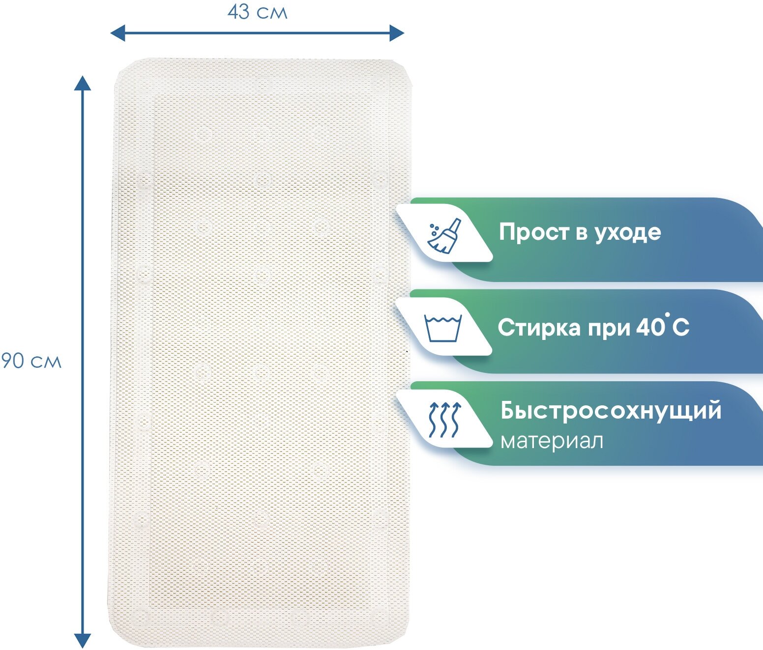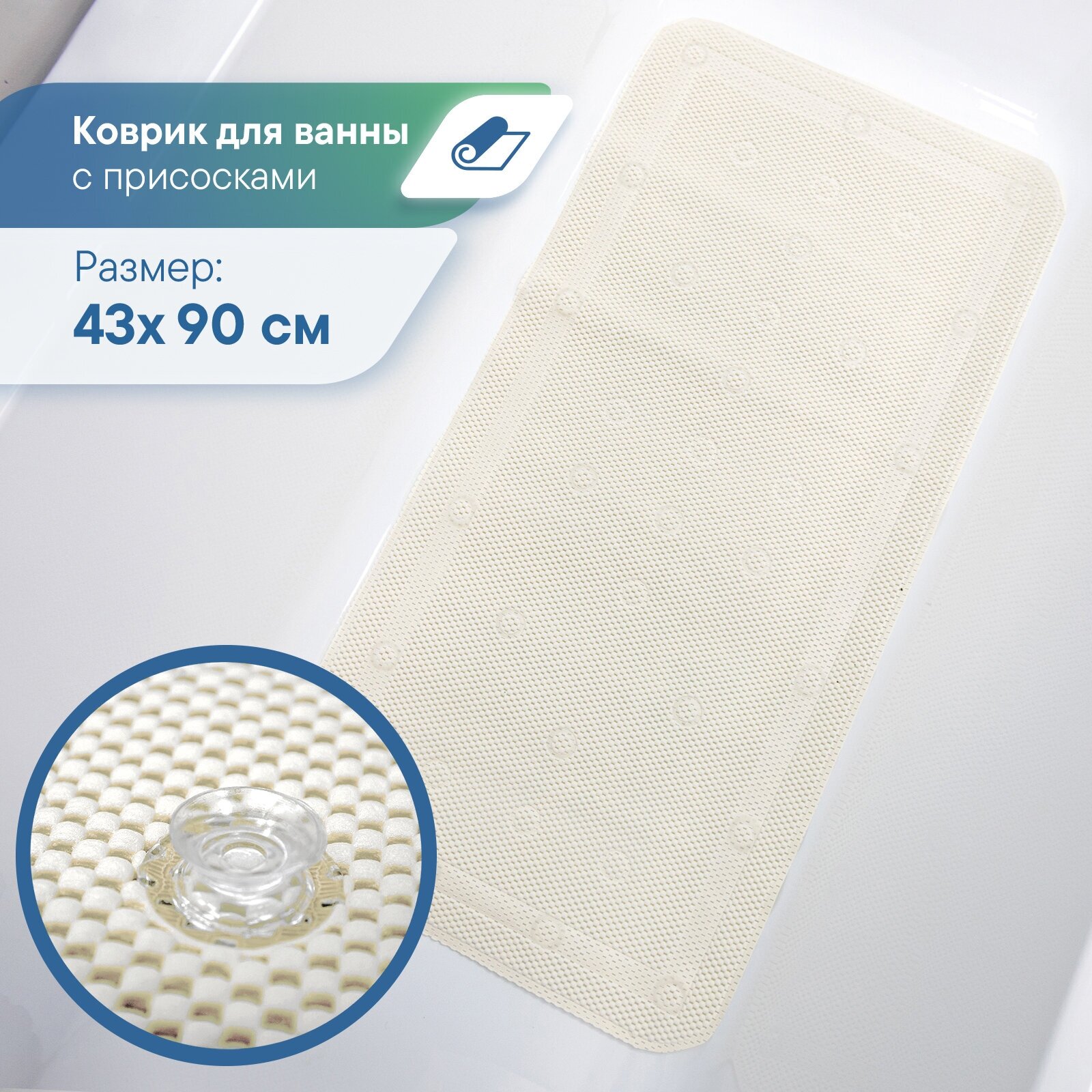 | Особенности | антибактериальный, антискользящий, массажный эффект, присоски |