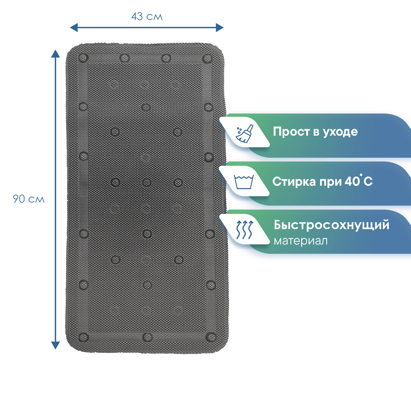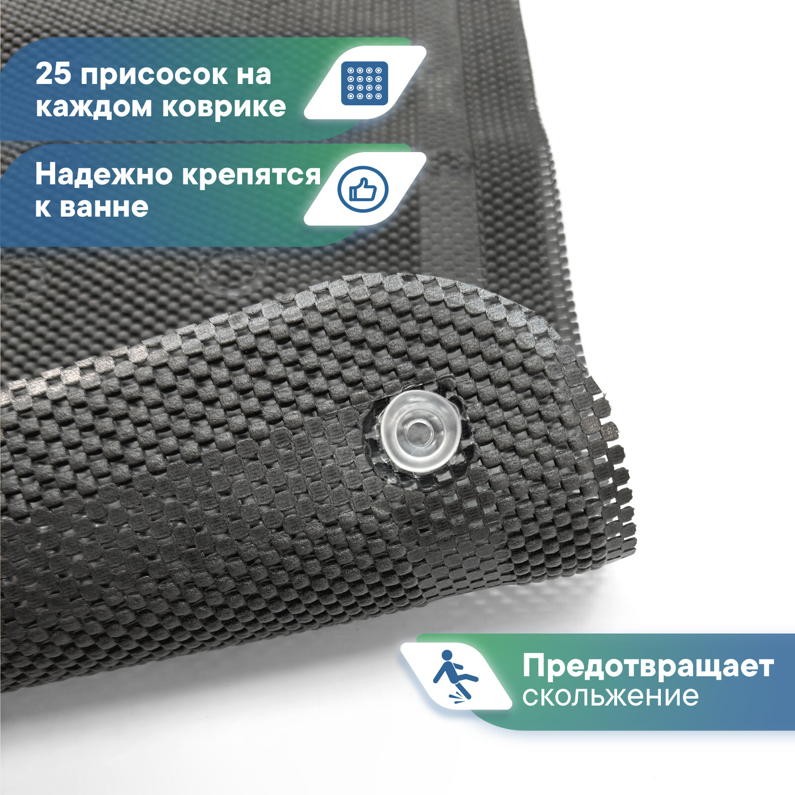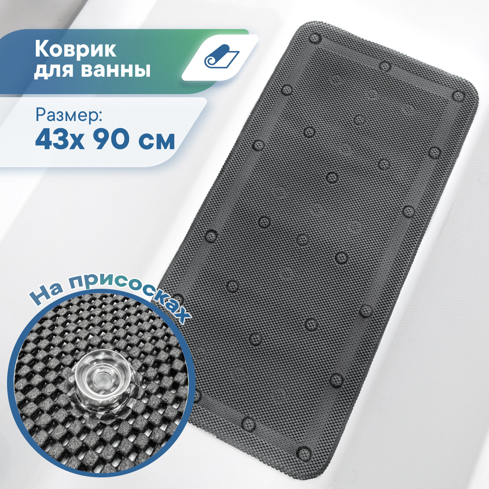 | Особенности | антибактериальный, антискользящий, массажный эффект, присоски |