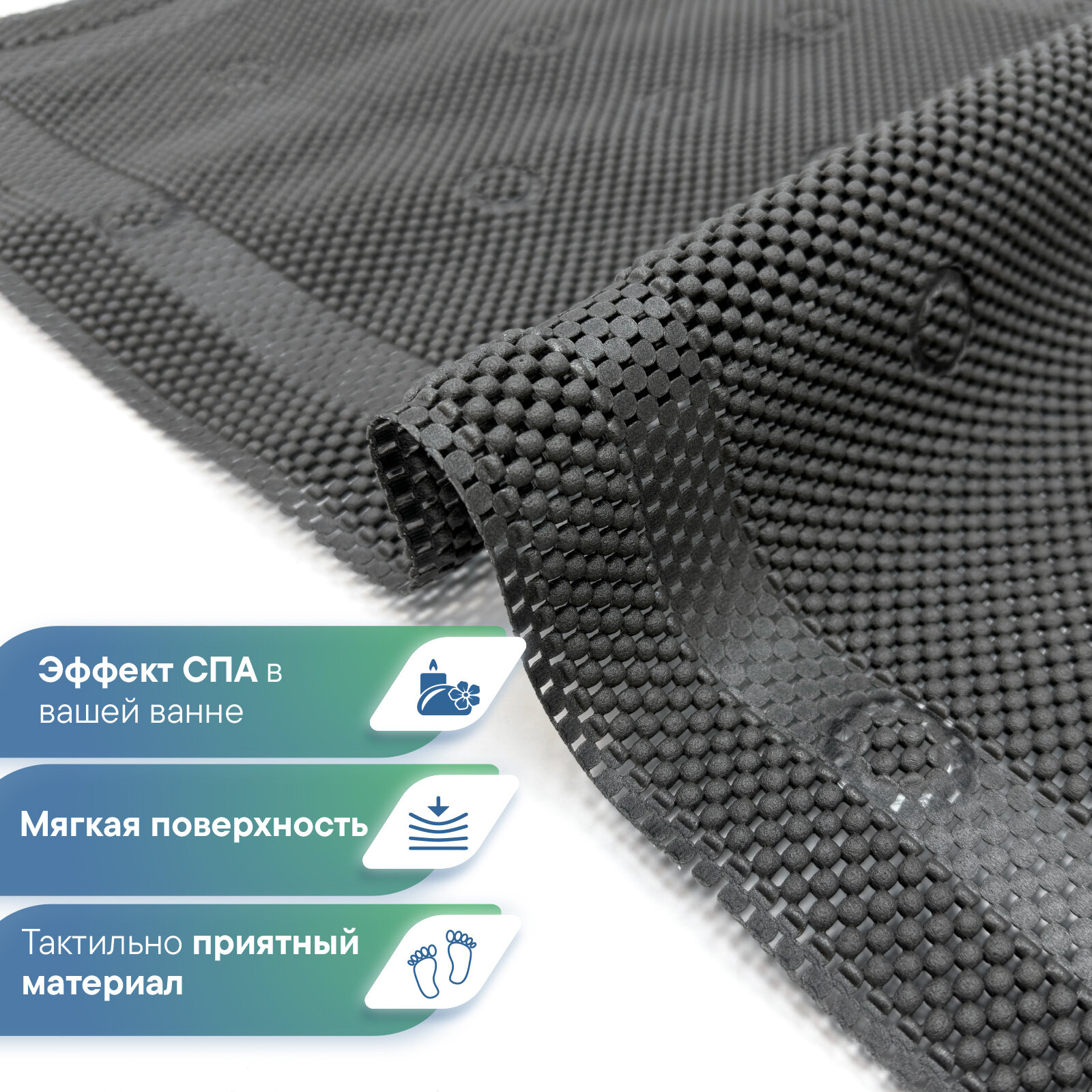 СохранитьКоврик для ванны с присосками VILINA мягкий противоскользящий массажный 43х90 см "Лотос" графитовый интересное:
