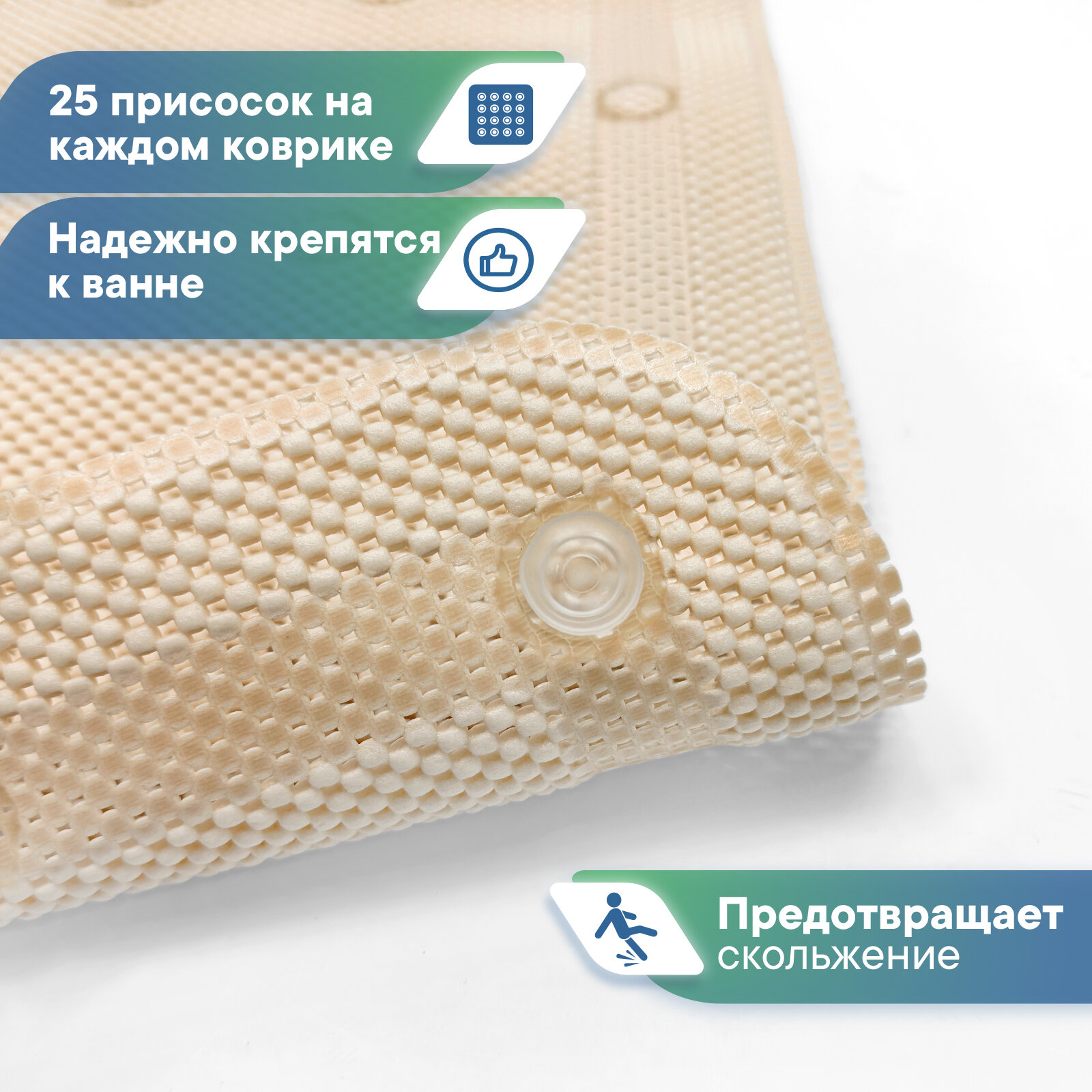 Коврик для ванны с присосками VILINA мягкий противоскользящий массажный 43х90 см "Лотос" бежевый