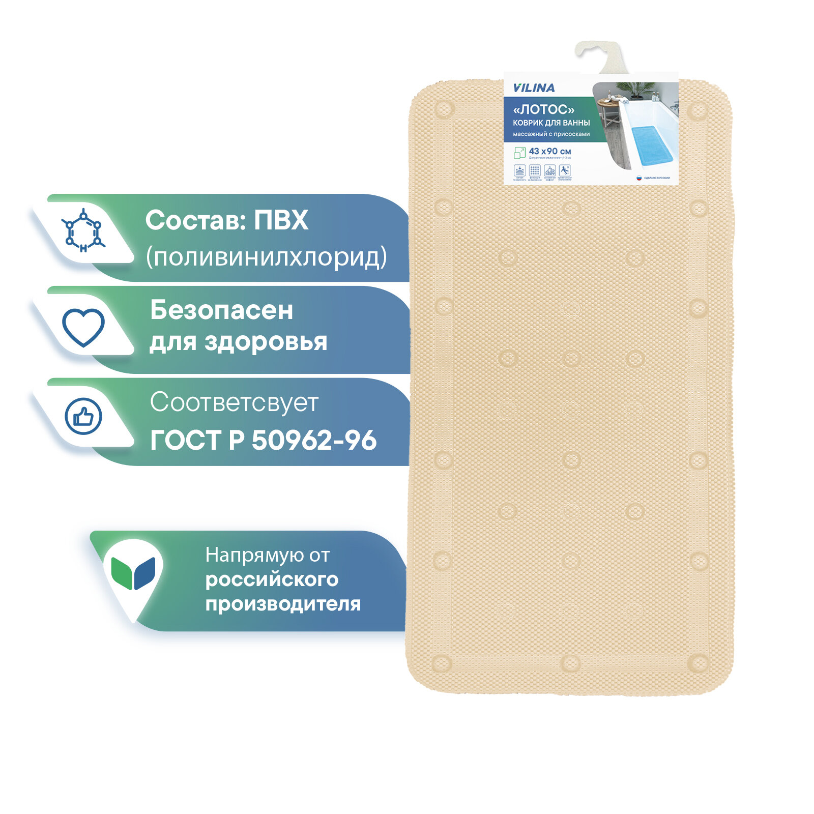 Купить Коврик для ванны с присосками VILINA мягкий противоскользящий массажный 43х90 см "Лотос" светло-бежевый