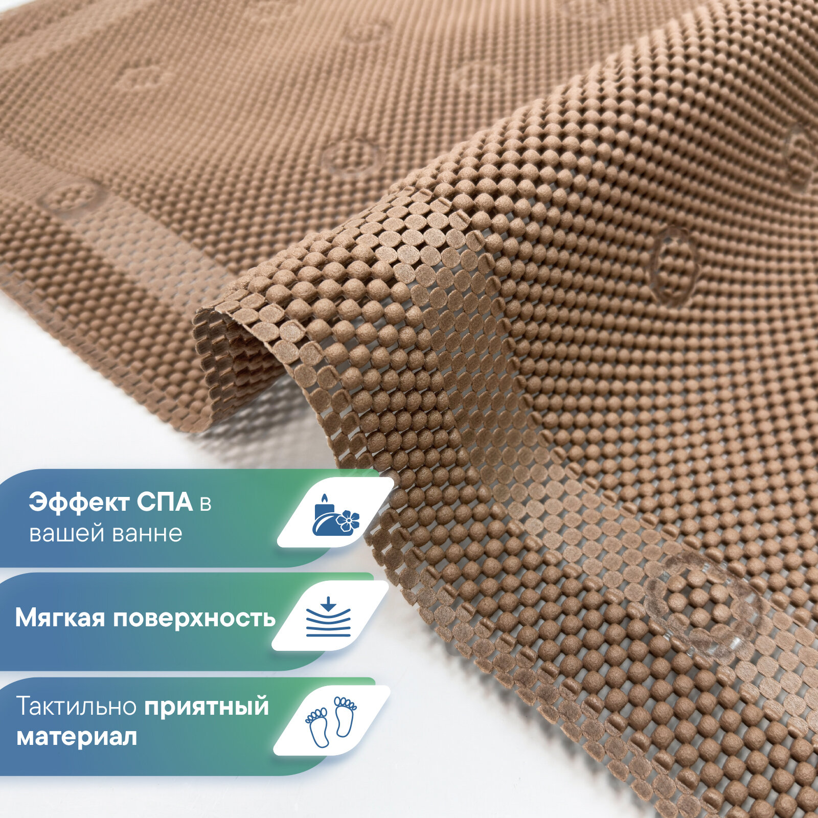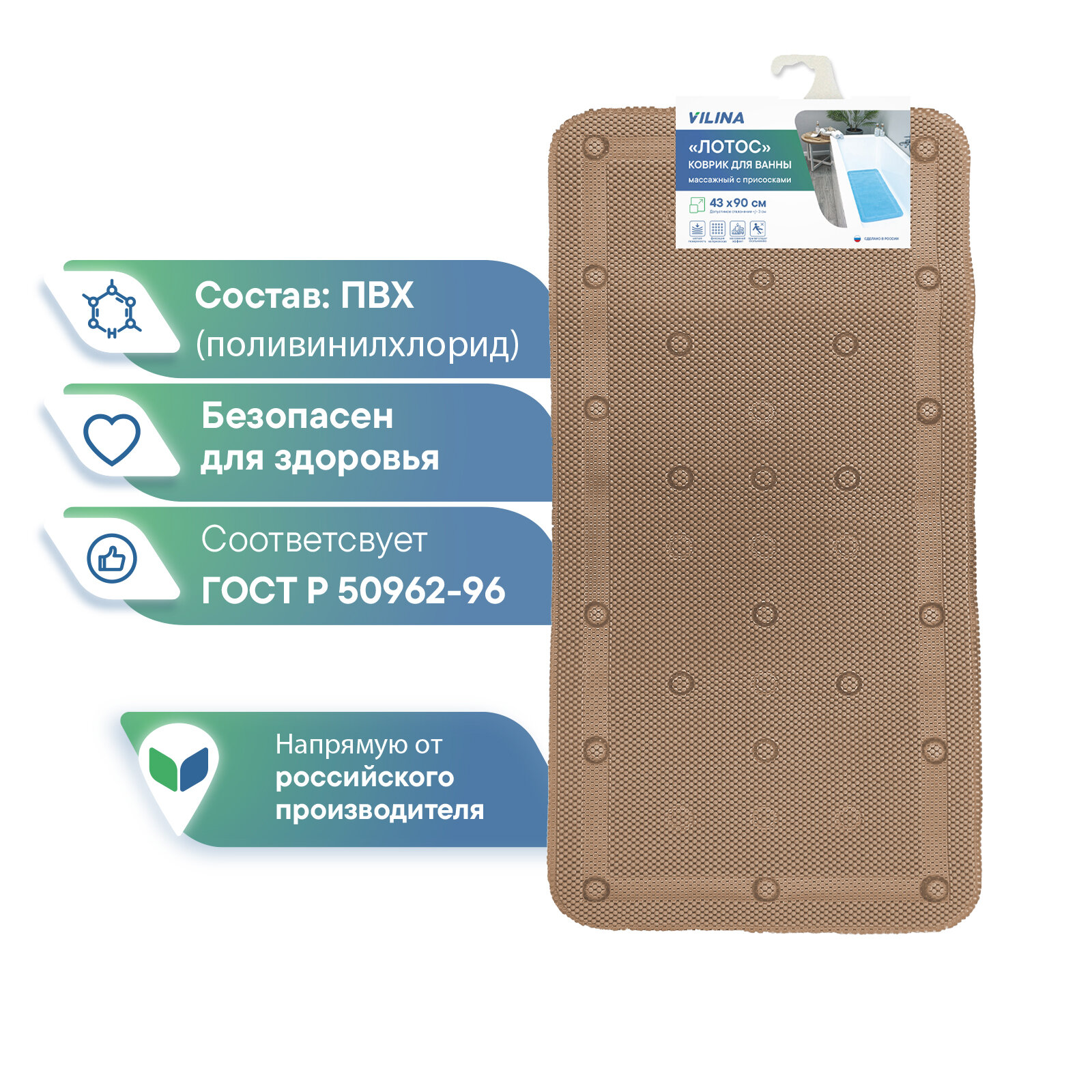 Купить Коврик для ванны с присосками VILINA мягкий противоскользящий массажный 43х90 см "Лотос" капучино