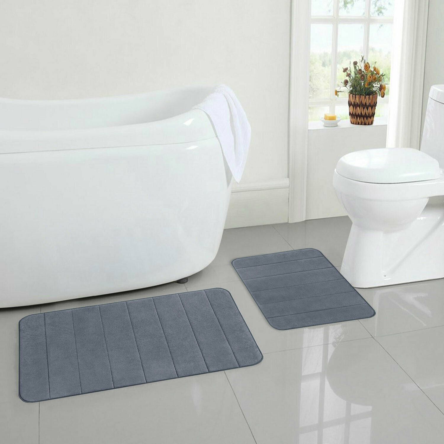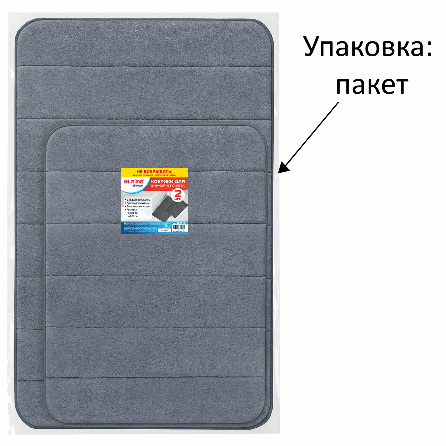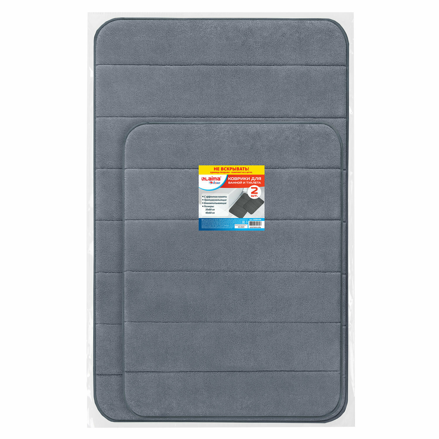 Комплект ковриков MEMORY EFFECT для ванной 50×80см и туалета 40×60см светло-серый LAIMA HOME608446