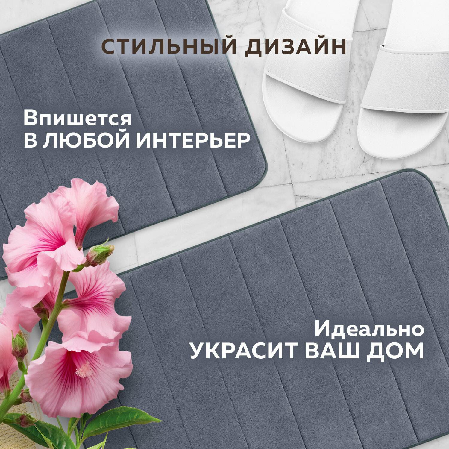 СохранитьКомплект ковриков Memory Effect для ванной 50*80см и туалета 40*60см темно-серый Laima Home, 608448 интересное: