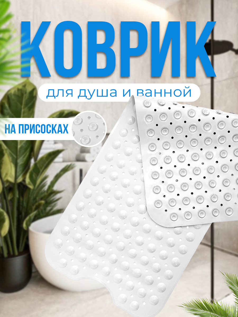 Коврик для ванной противоскользящий на присосках (белый, 40*100 см) интересное:
