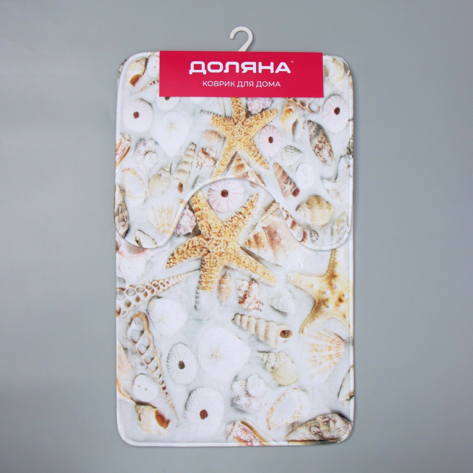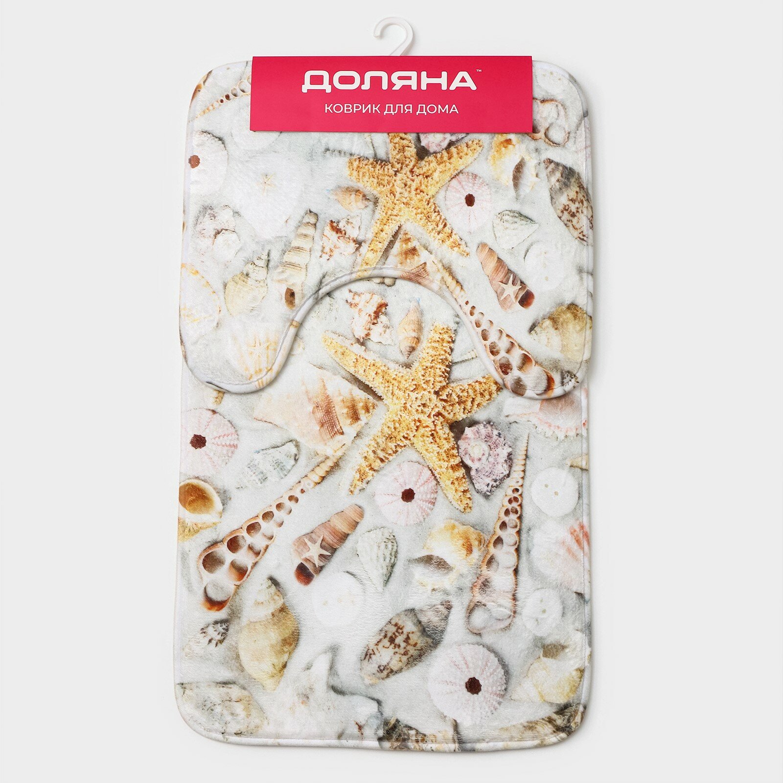Купить Коврик для ванной Доляна «Ракушки» и туалета: 45×36, 75×44 см
