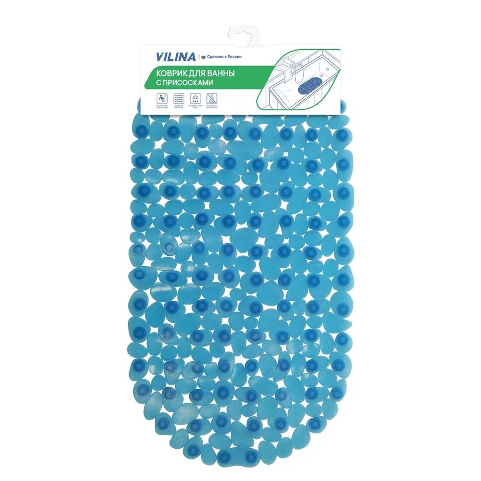 СохранитьКоврик для ванной с присосками VILINA противоскользящий резиновый массажный для ванны 36х69 см синий интересное: