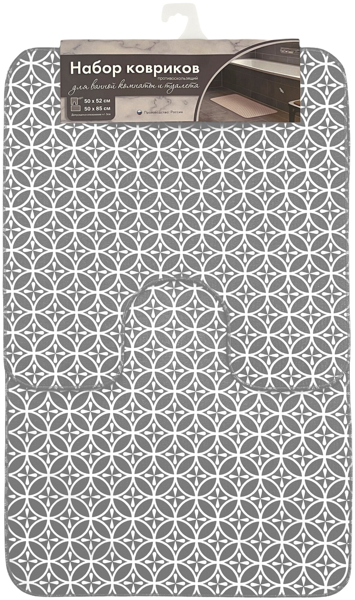 Купить Набор ковриков для ванны и туалета с вырезом 50x85 ,50x52 см VILINA текстильные противоскользящие мягкие безворсовыеОрнамент серый