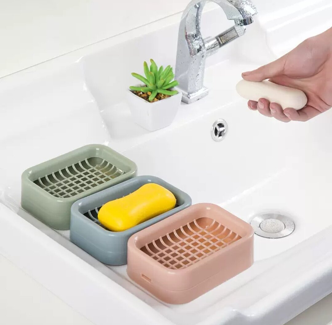 Мыльница со сливом оливковая, пластиковая, с двойным решетчатым дном