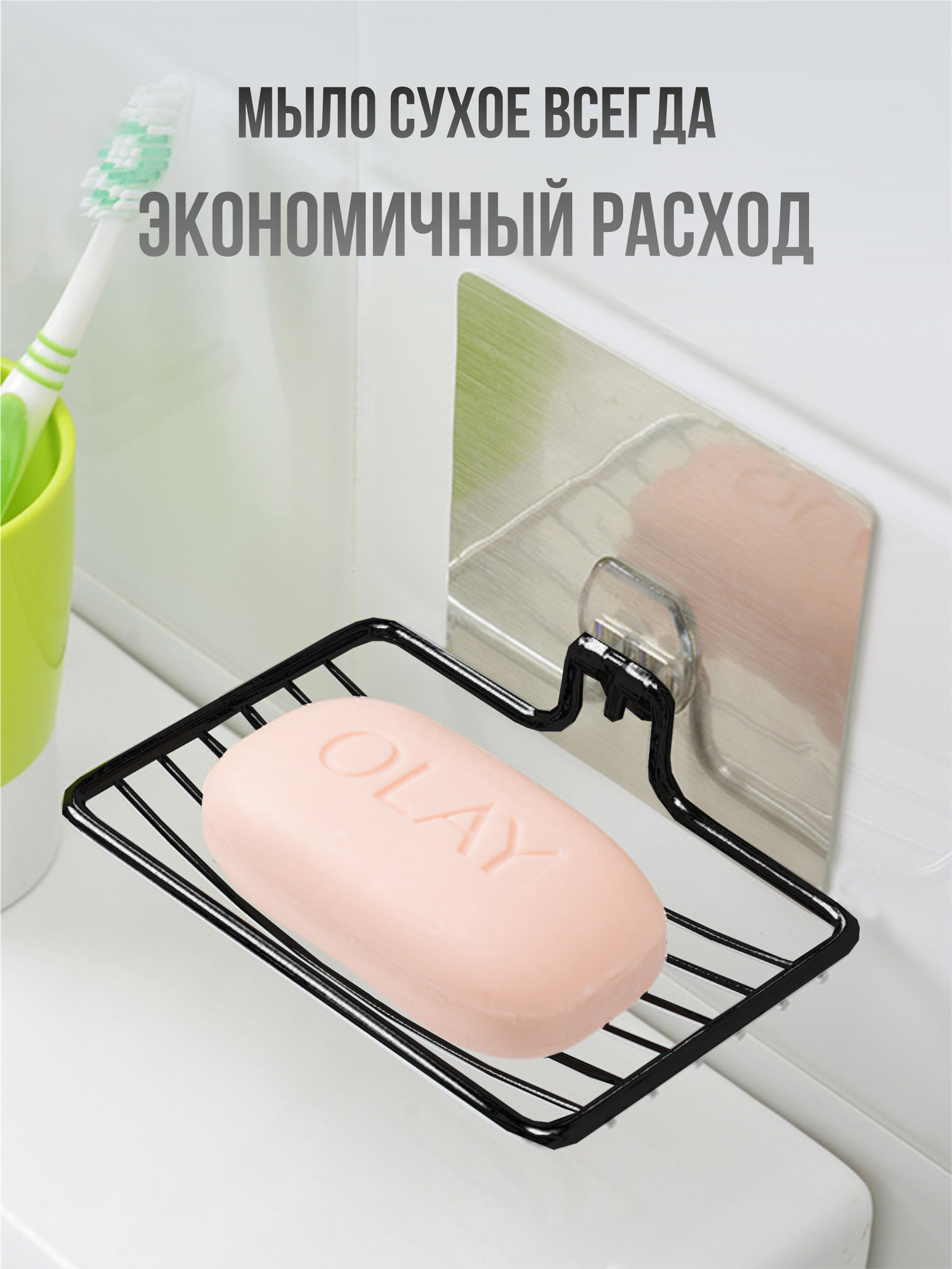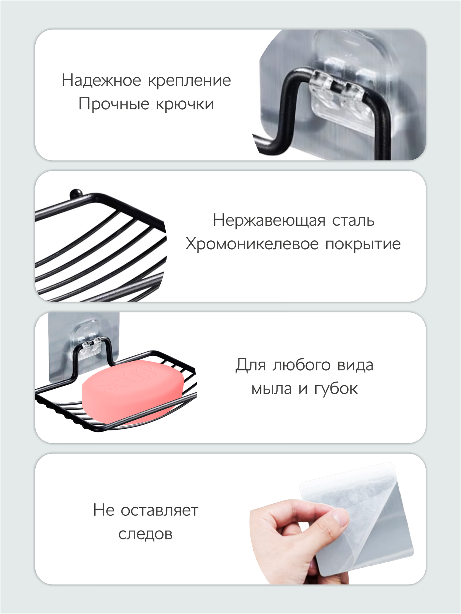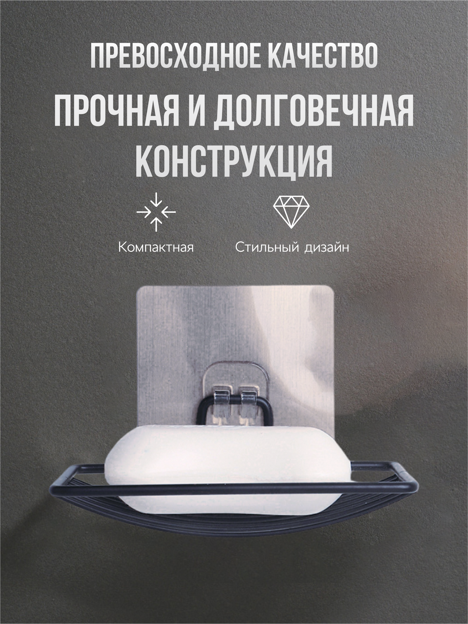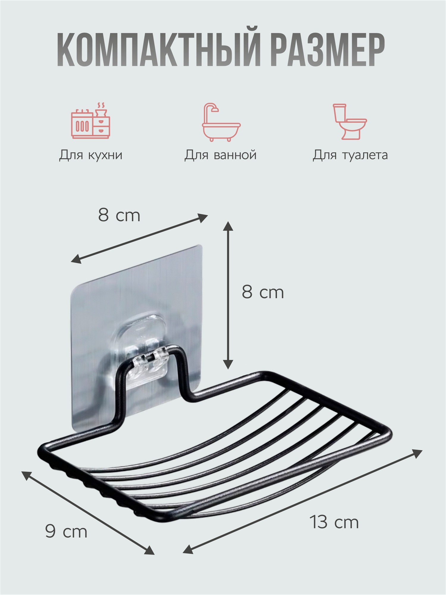 Мыльница для ванной комнаты, настенная подвесная без сверления. чёрная с серебристой клевой основой. интересное: