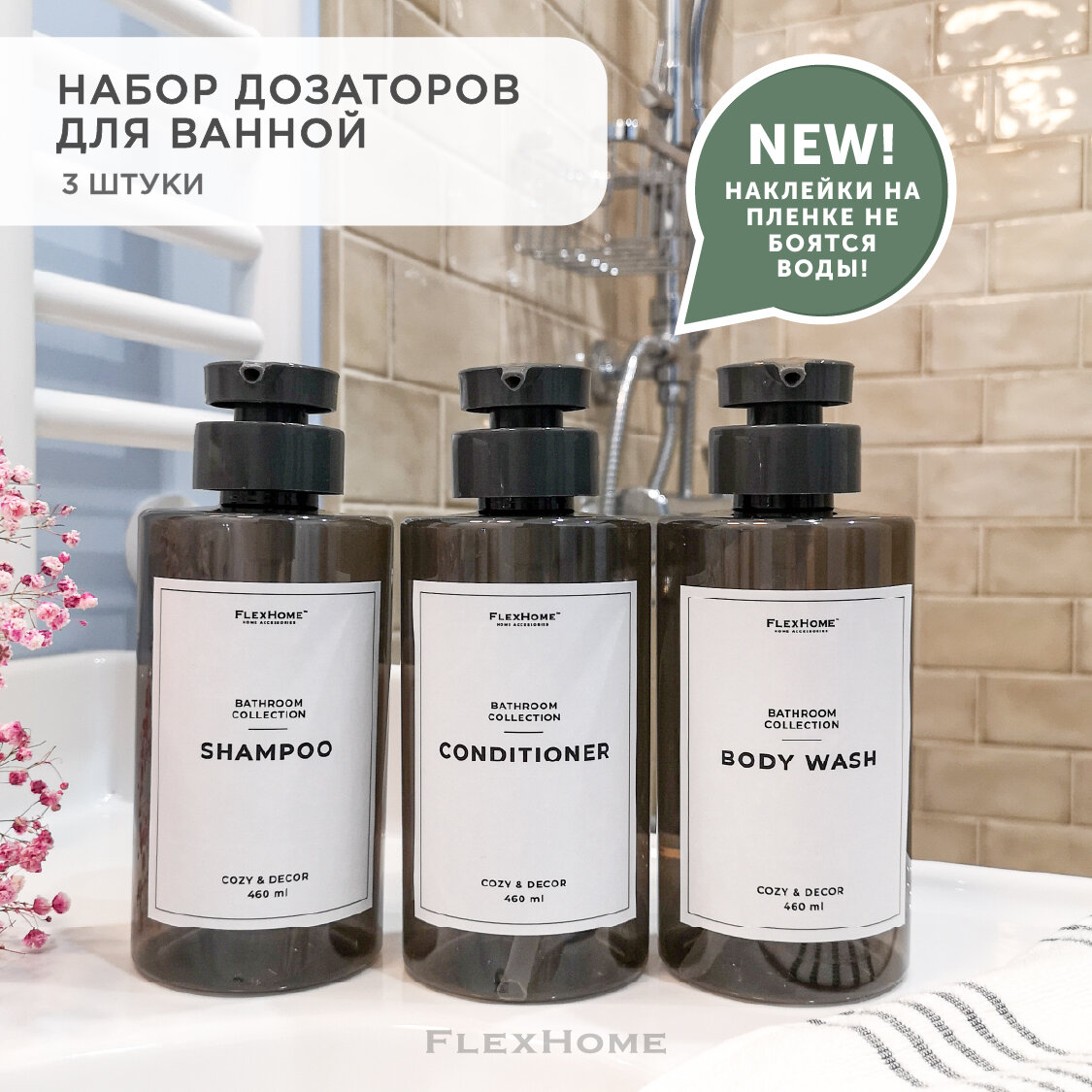 Набор дозаторов для ванны FlexHome, ФлексХоум, 460 мл, цвет Белый интересное: