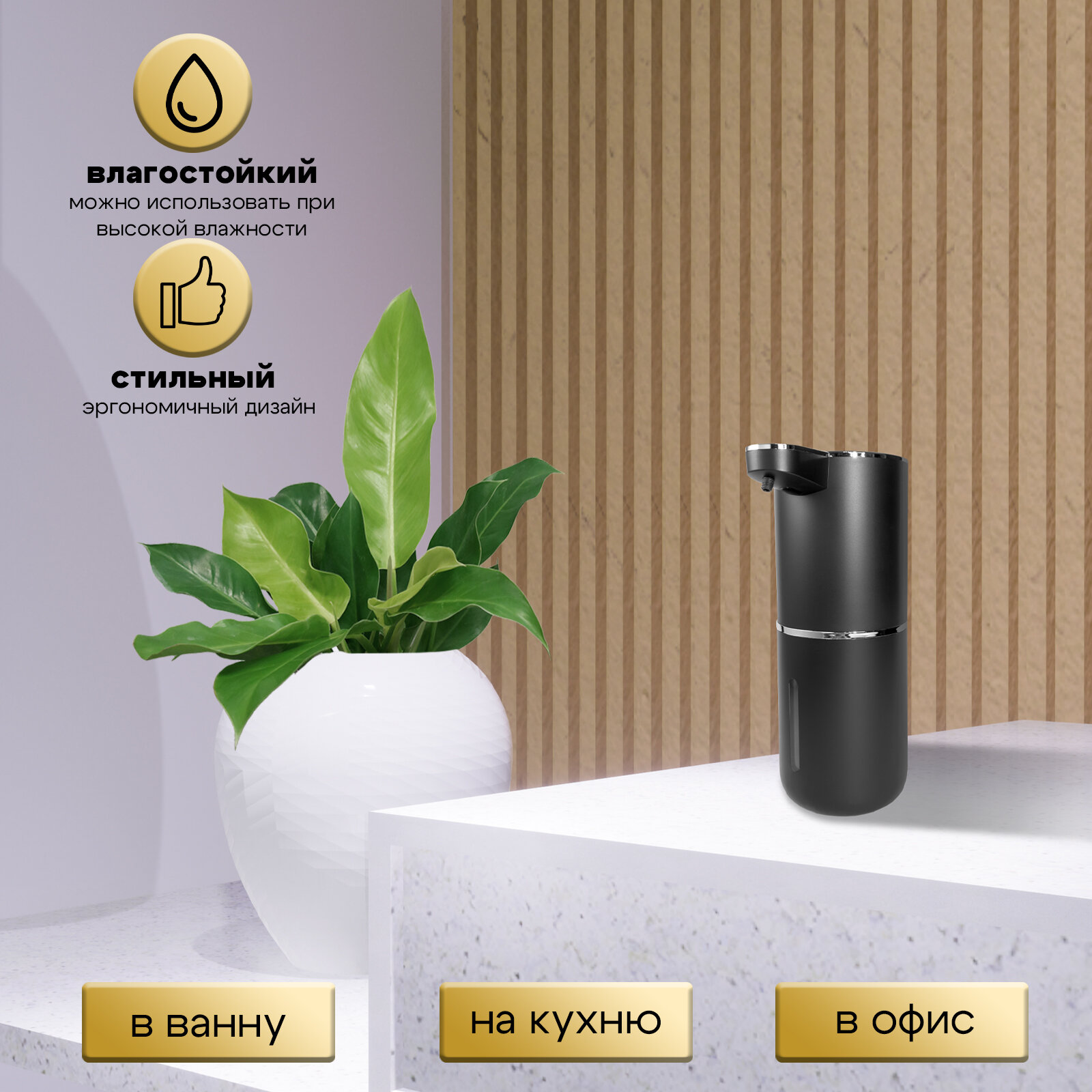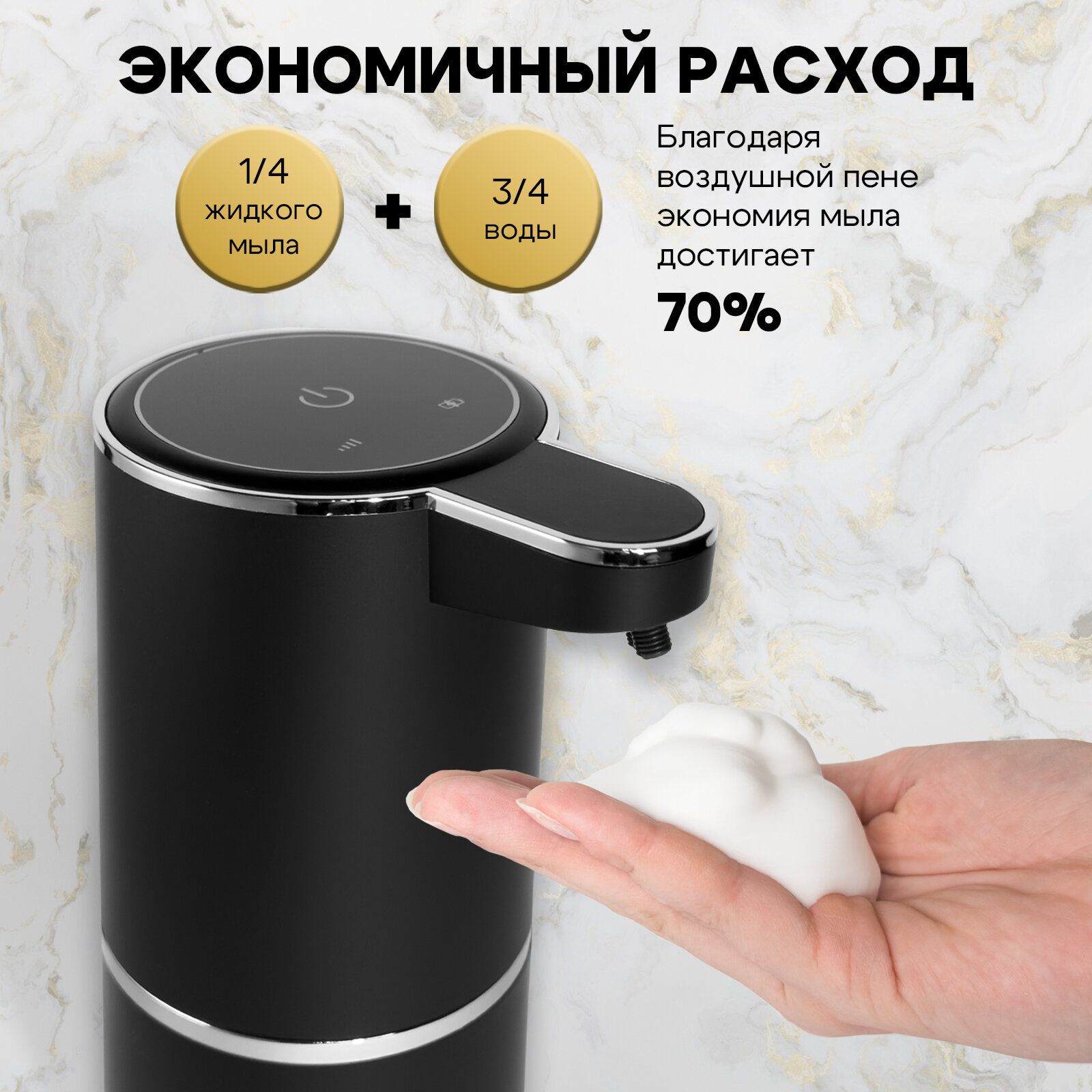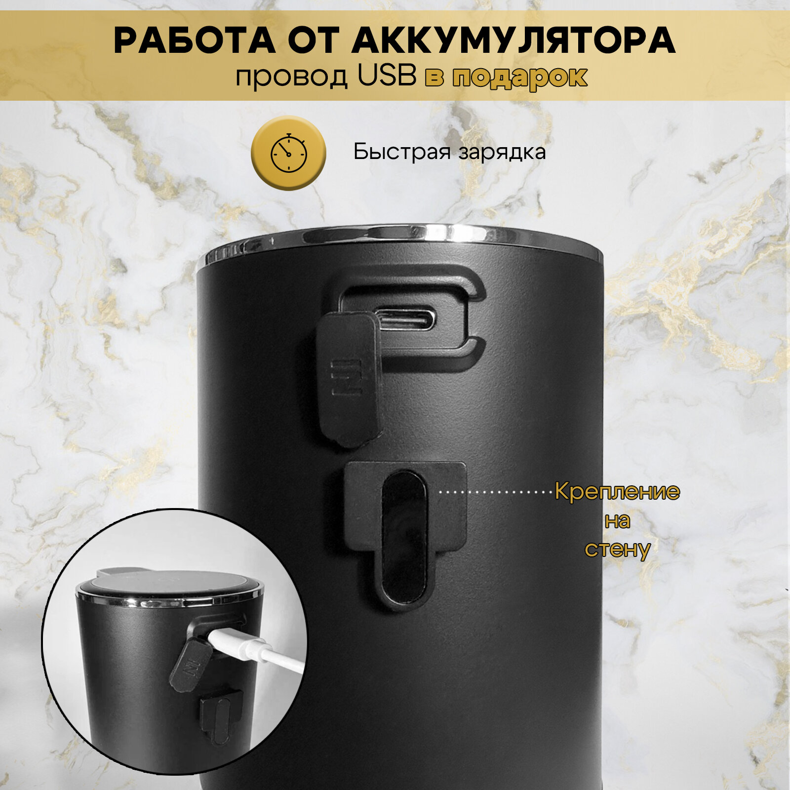 Сенсорный дозатор для жидкого и пенного мыла, 380мл, черный, с держателем и USB-кабелем интересное: