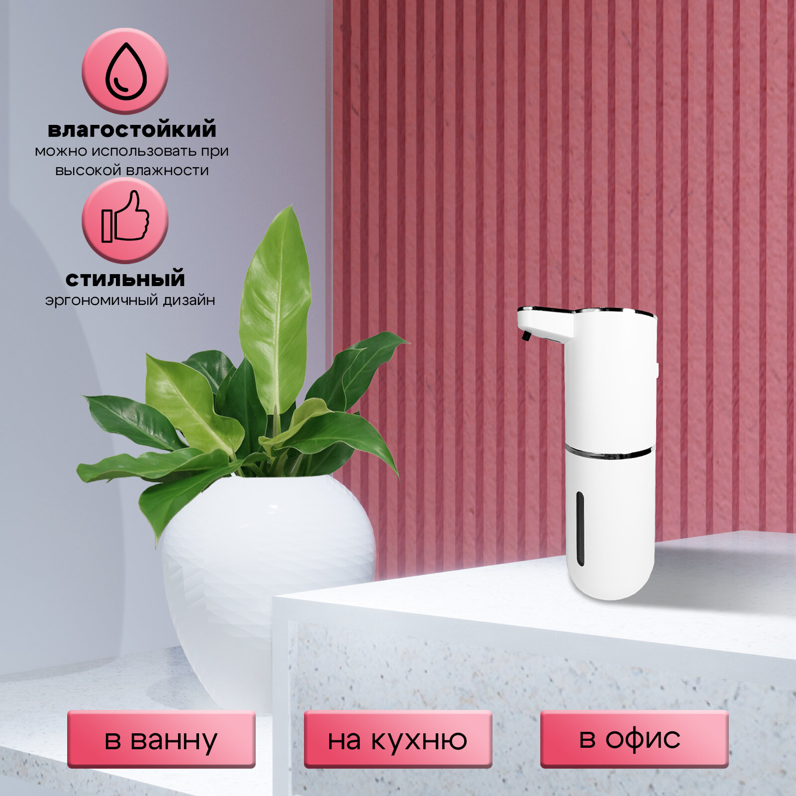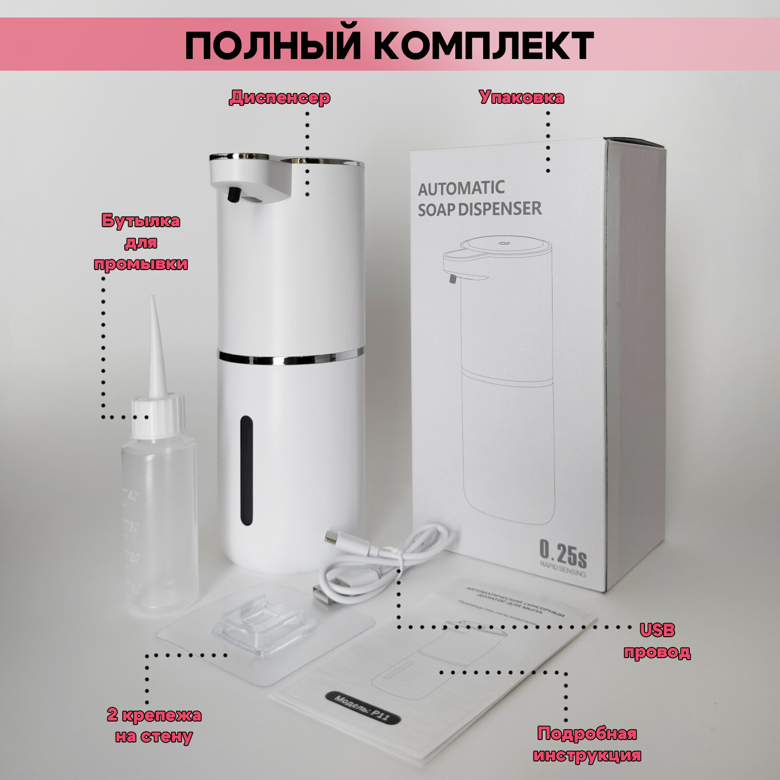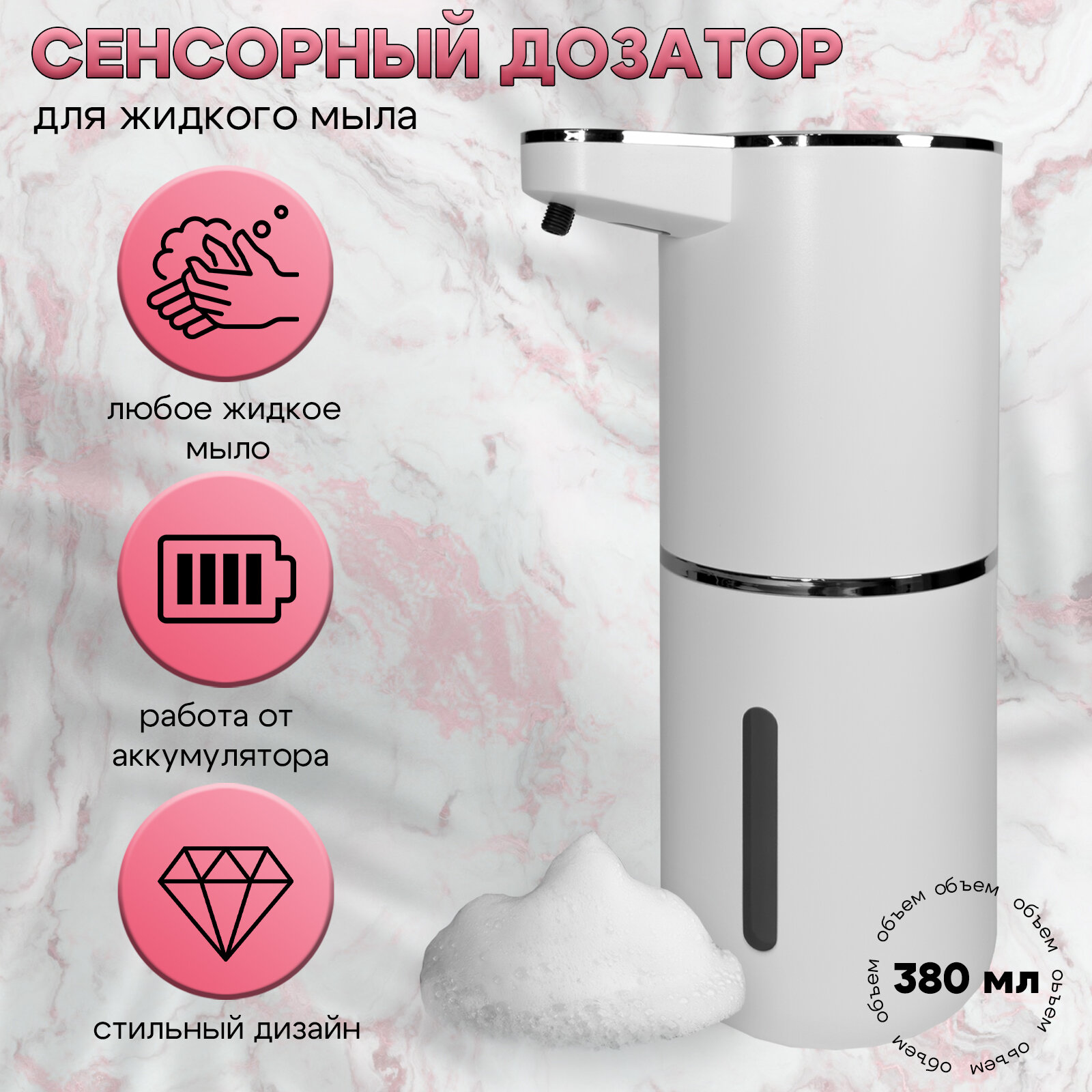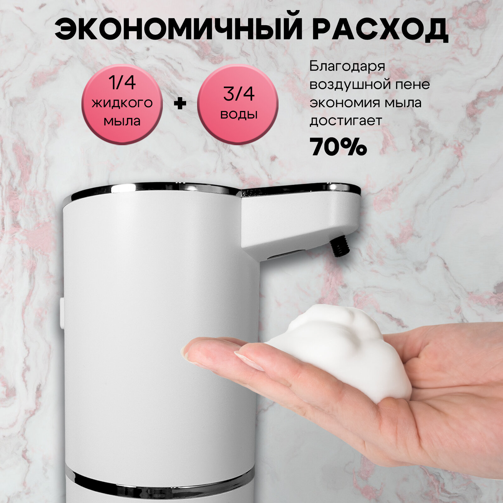 Сенсорный дозатор для жидкого и пенного мыла, 380мл, белый, с держателем и USB-кабелем интересное: