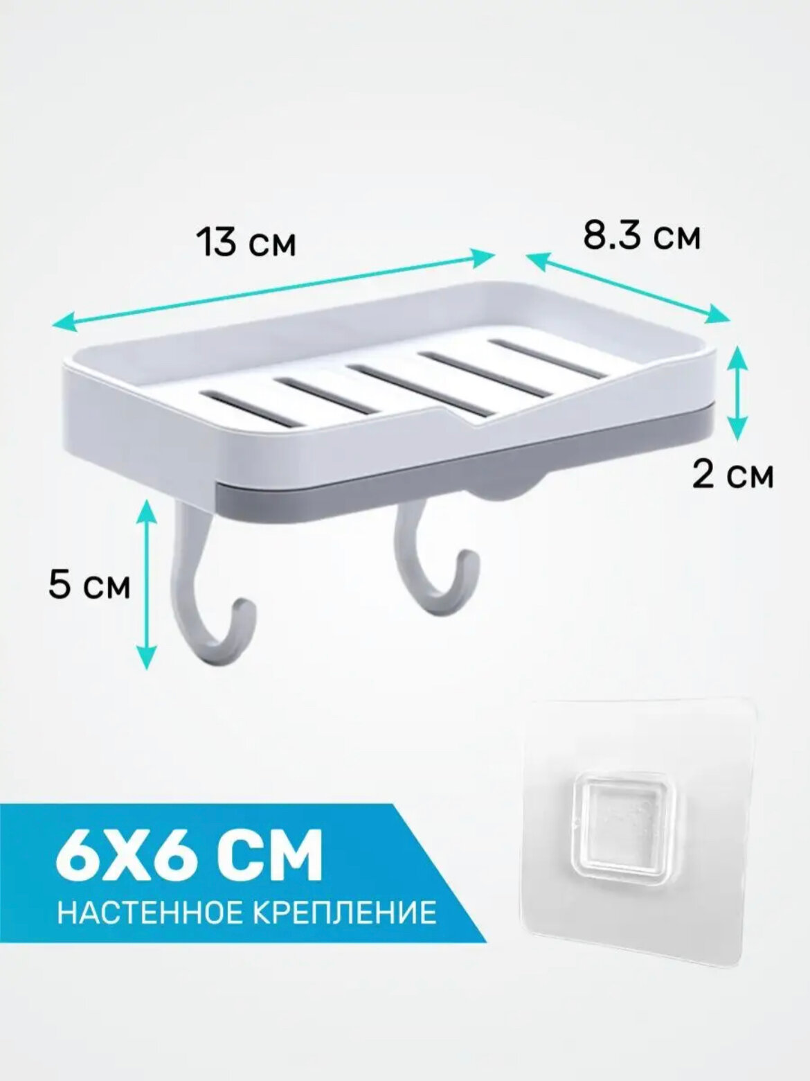 | Подробная комплектация | Мыльница, два крючка, поддон, клейкое крепление, пакет. мыльница в ванную без сверления. мыльница в ванную на присоске.. |