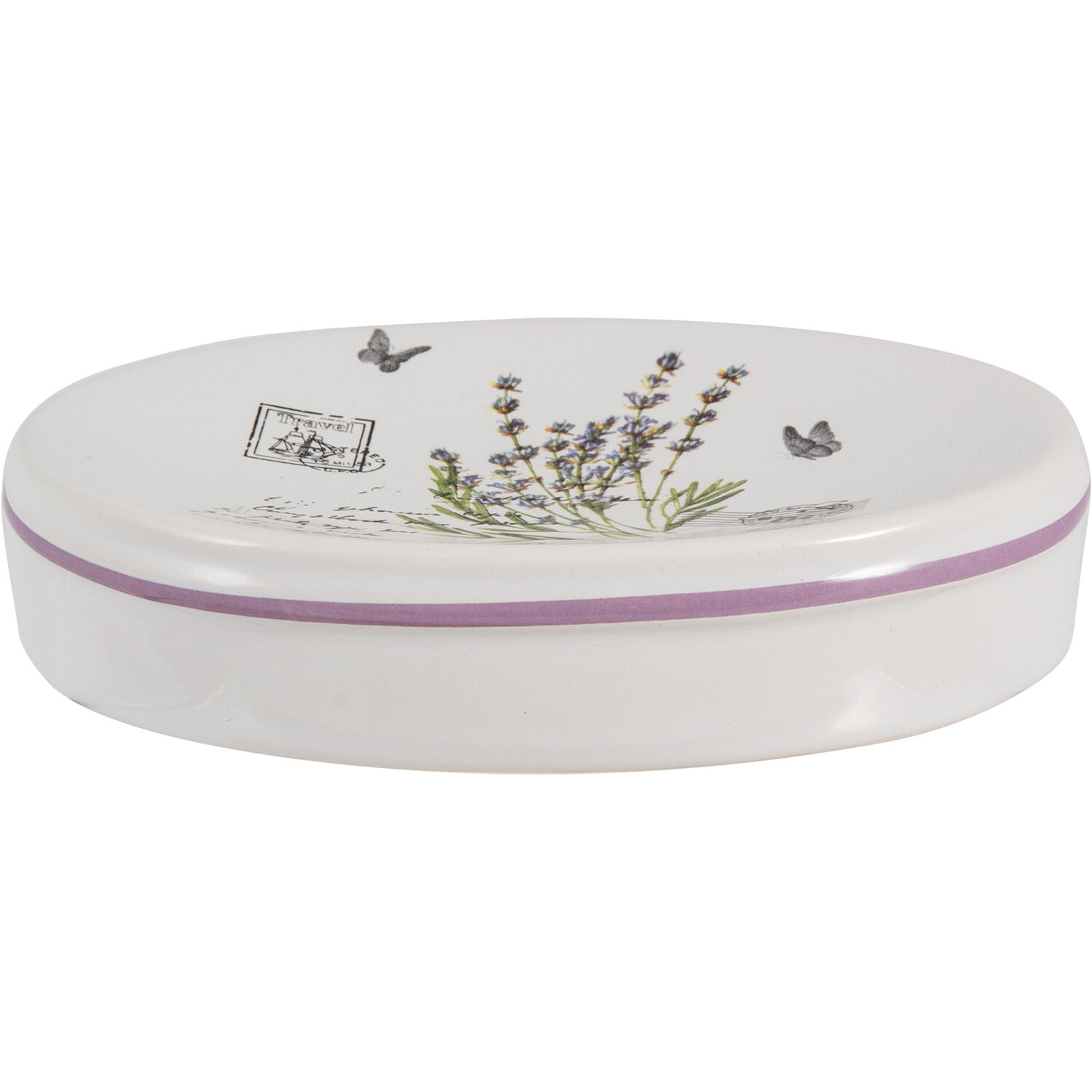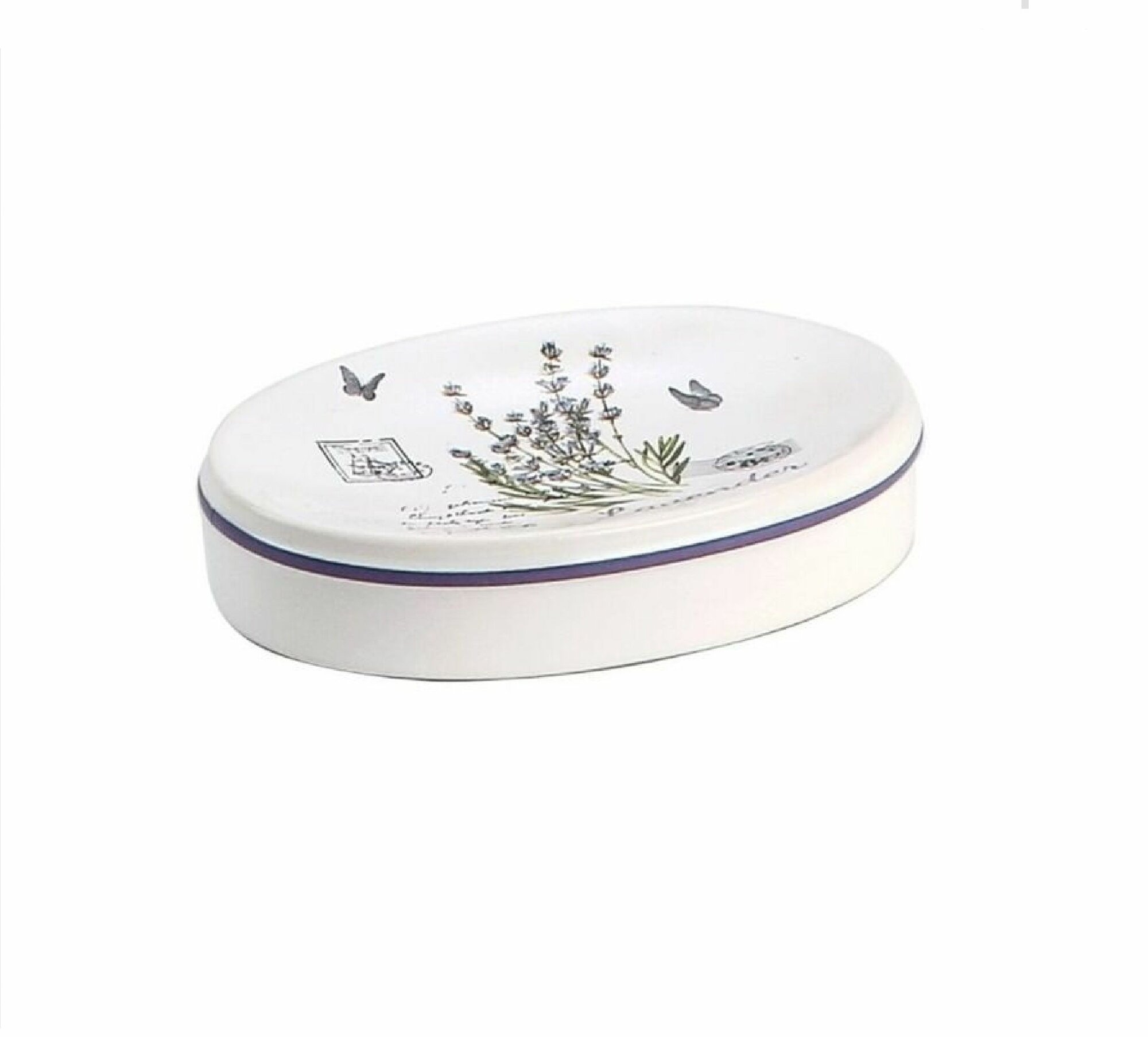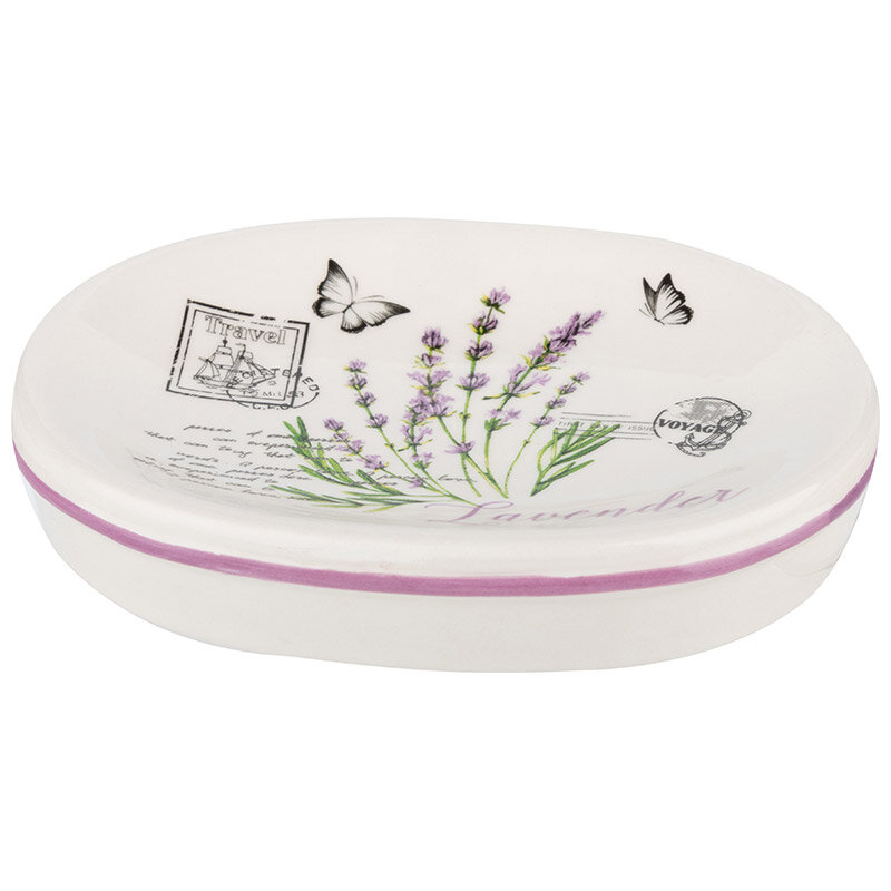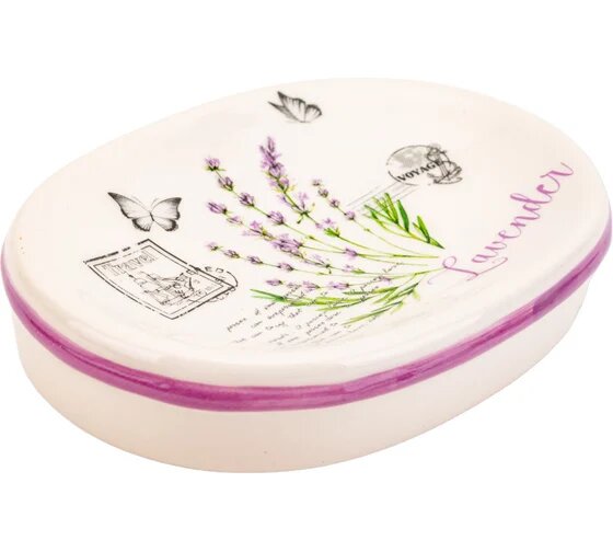 Мыльница керамическая "Лаванда", овальная, для кускового мыла, настольная, белый/сиреневый