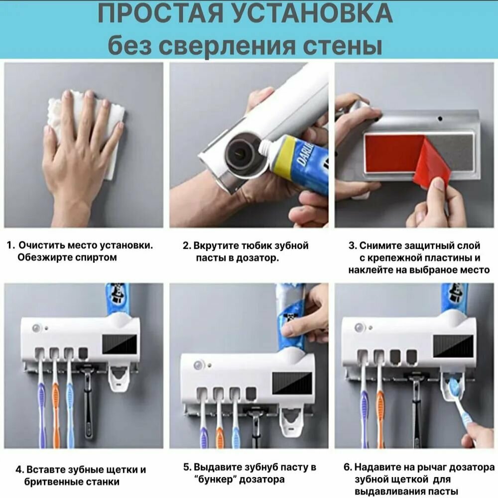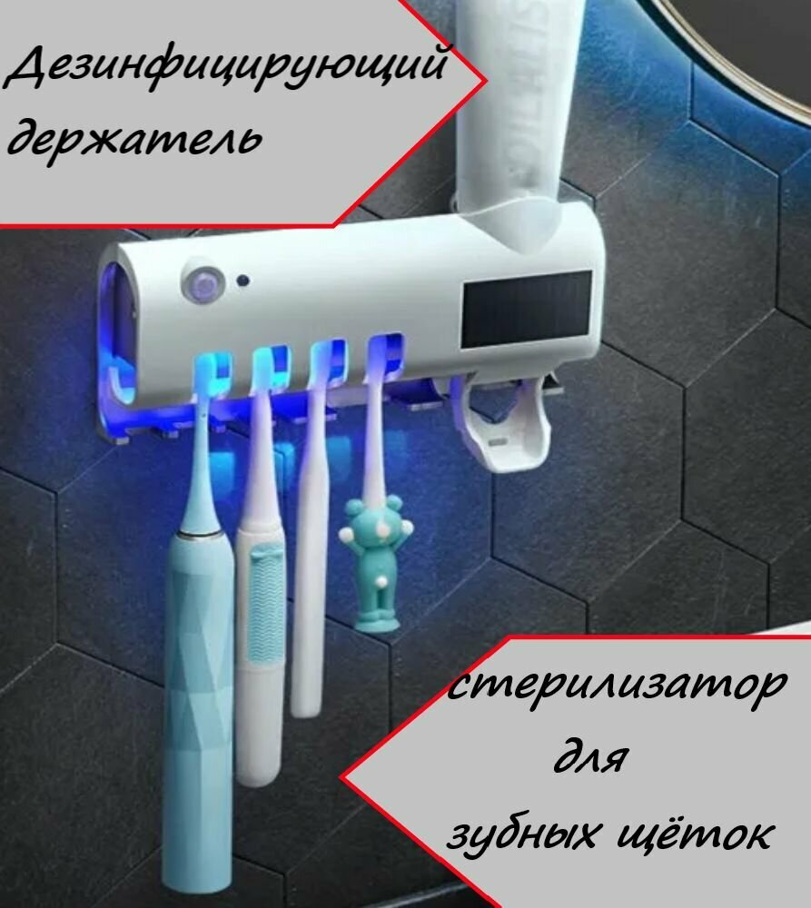 Автоматический дозатор для зубной пасты 4 щетки со стерилизатором / подставка под 4 зубные щетки / экономичный дозатор пасты интересное: