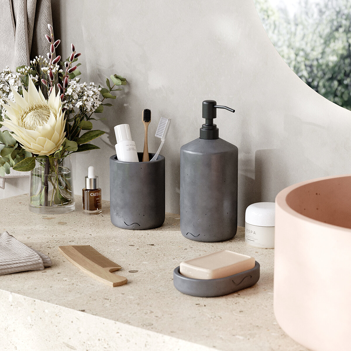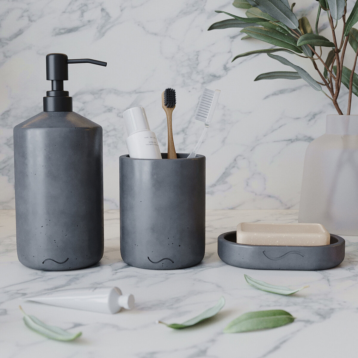 Набор для ванной комнаты Astrid 30 (дозатор с черной помпой, стакан, мыльница), бетон, графитовый матовый