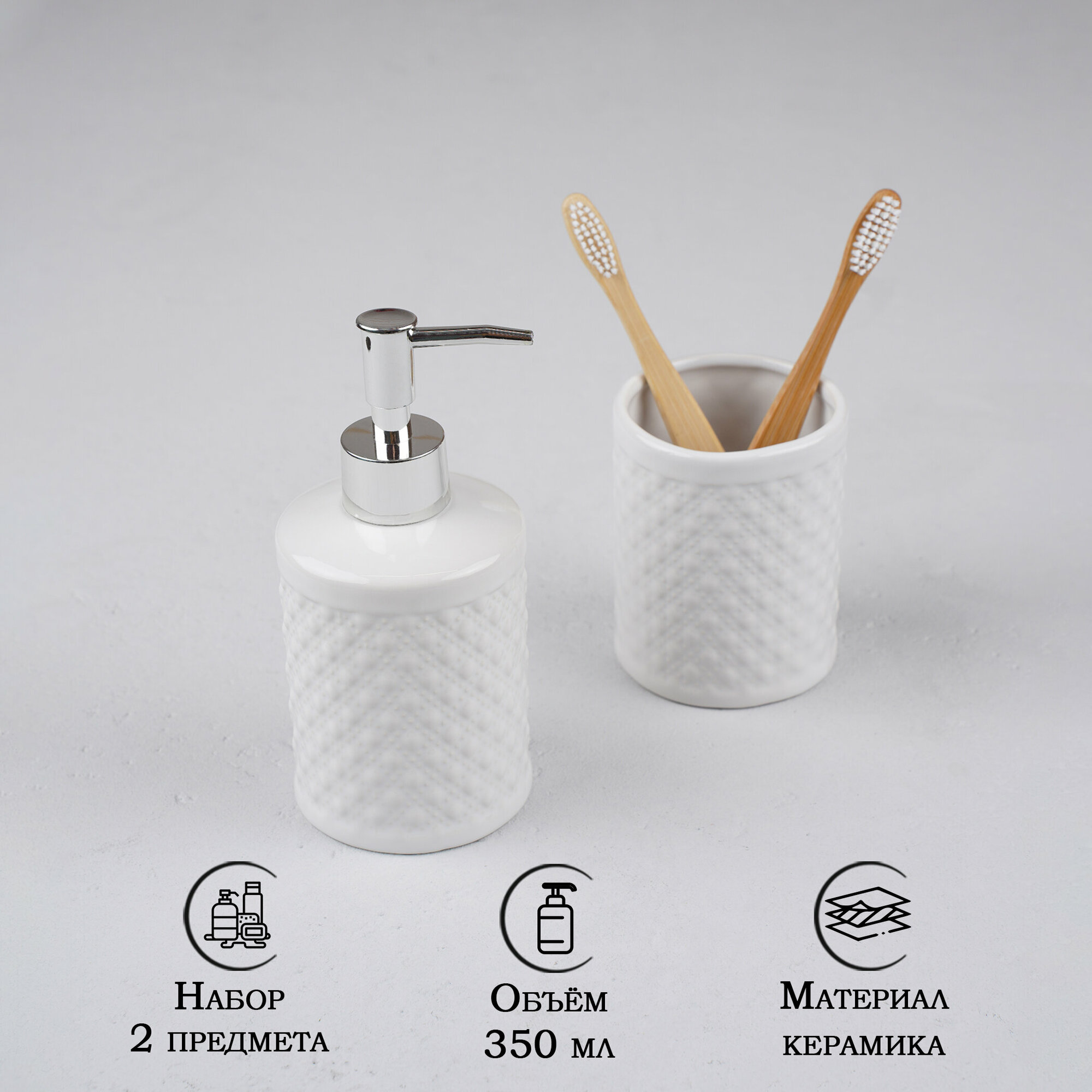 Набор для ванной SKYPHOS "Бусы", дозатор для мыла, стакан, цвет белый интересное: