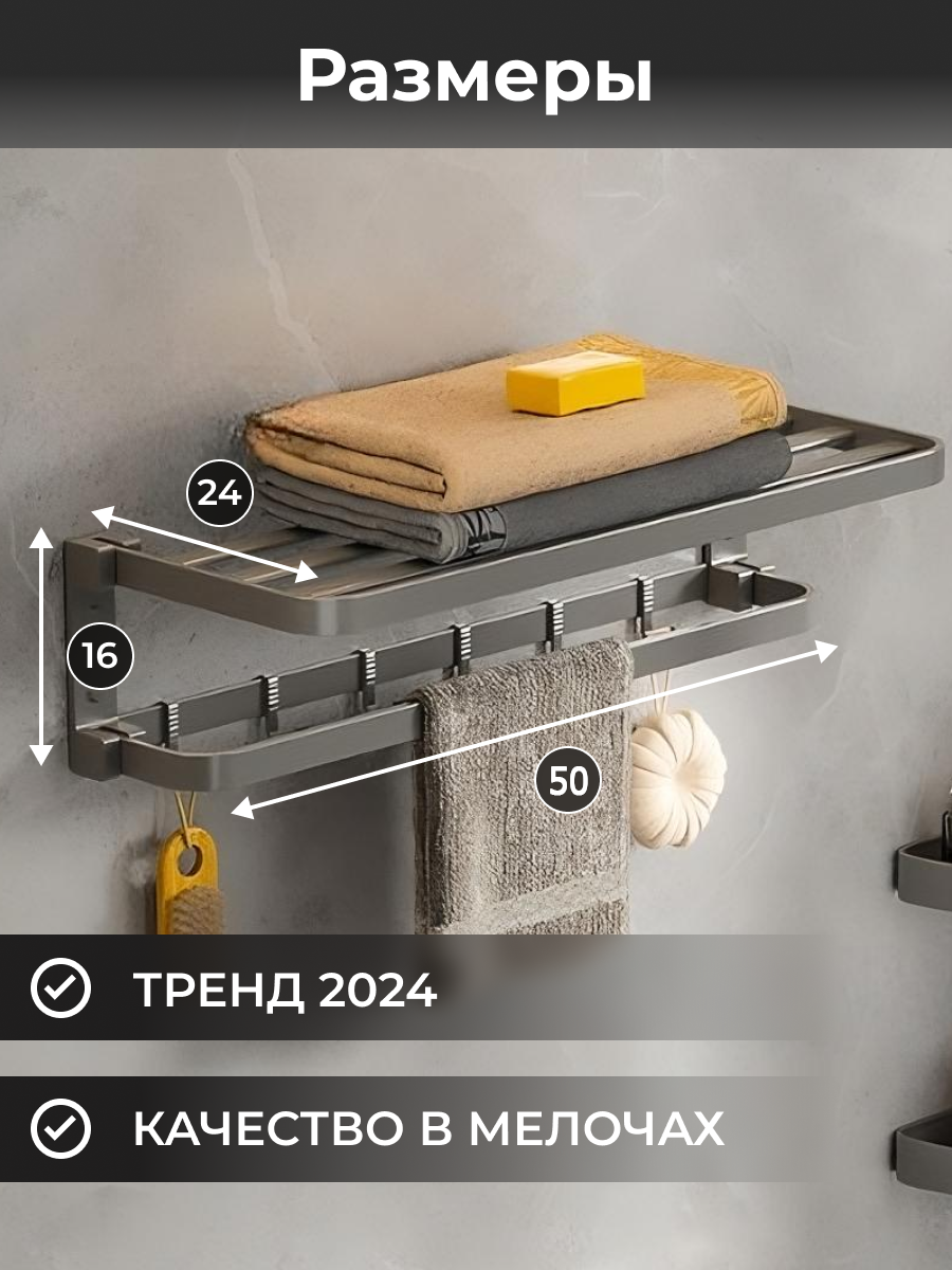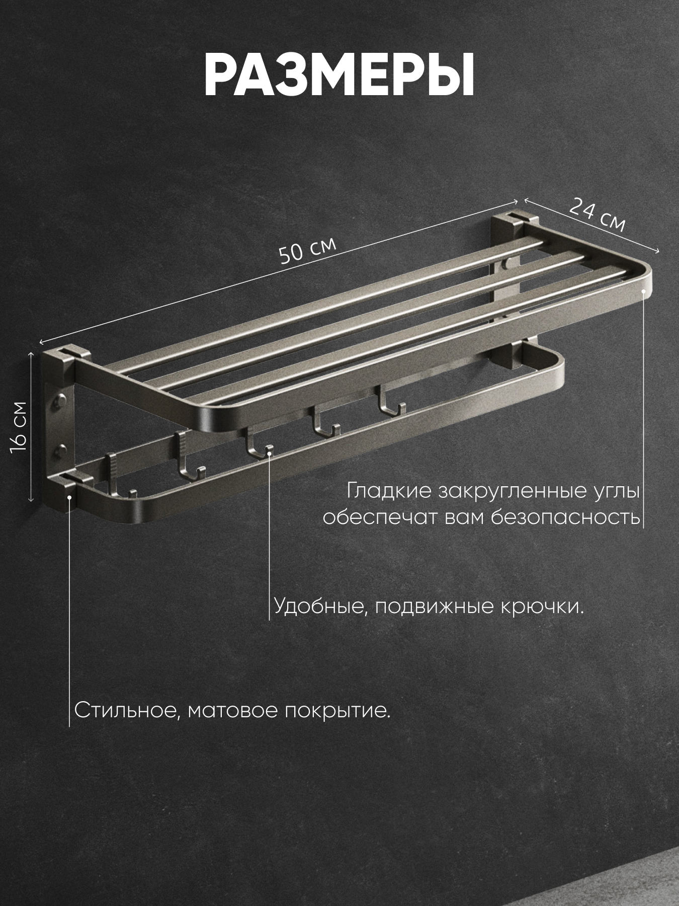 СохранитьПолка для ванной без сверления "INTERIORIKA" с крючками, серая/хром, 50х24х16 интересное: