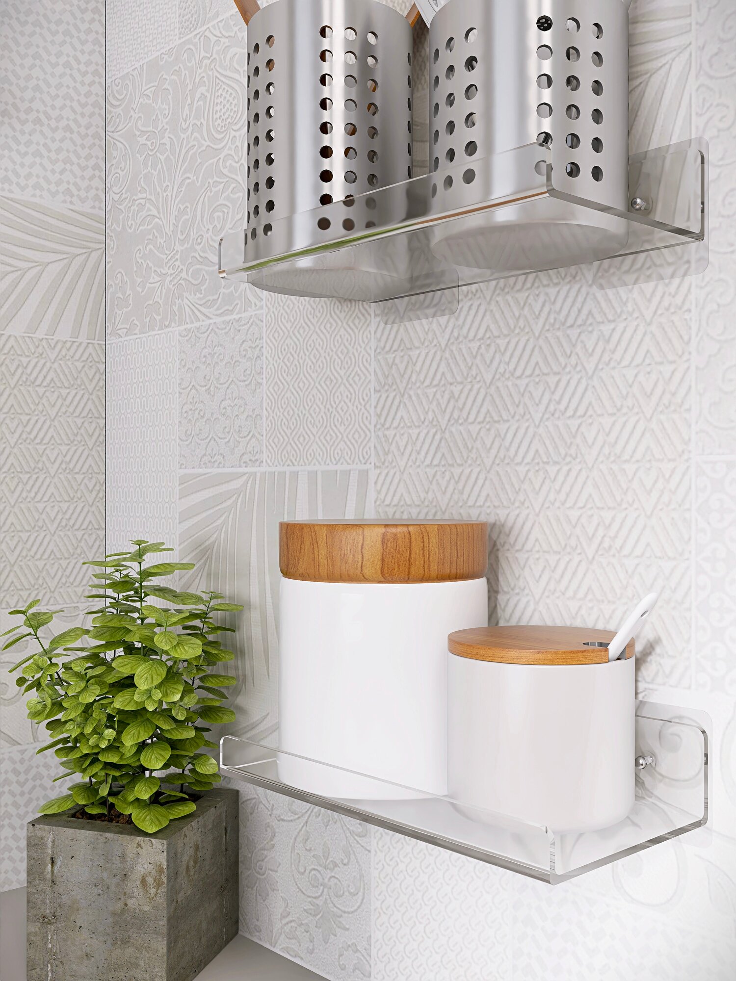 | Комплектация | полка прозрачная 20 см - 1 шт, полка прозрачная 30 см - 1 шт, полка прозрачная 40 см - 1 шт, самоклеящиеся крепления - 8 шт. |