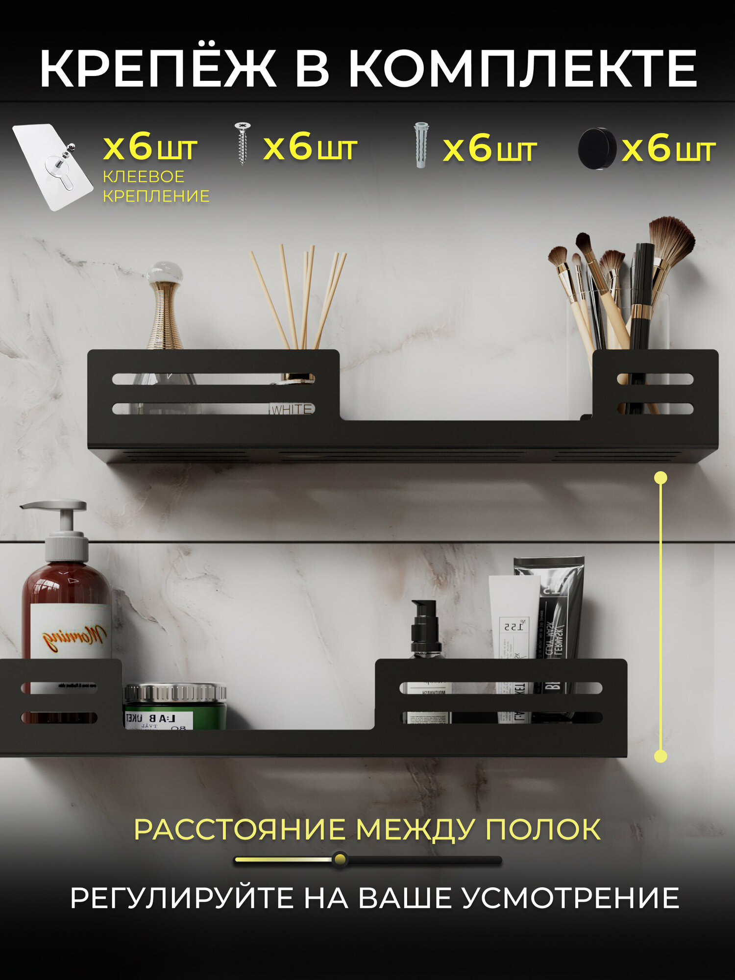 Купить Полка для ванной настенная, металлическая, для полотенец, мыла, крема, косметики, шампуня, геля, бритвы, черная, 3 шт.