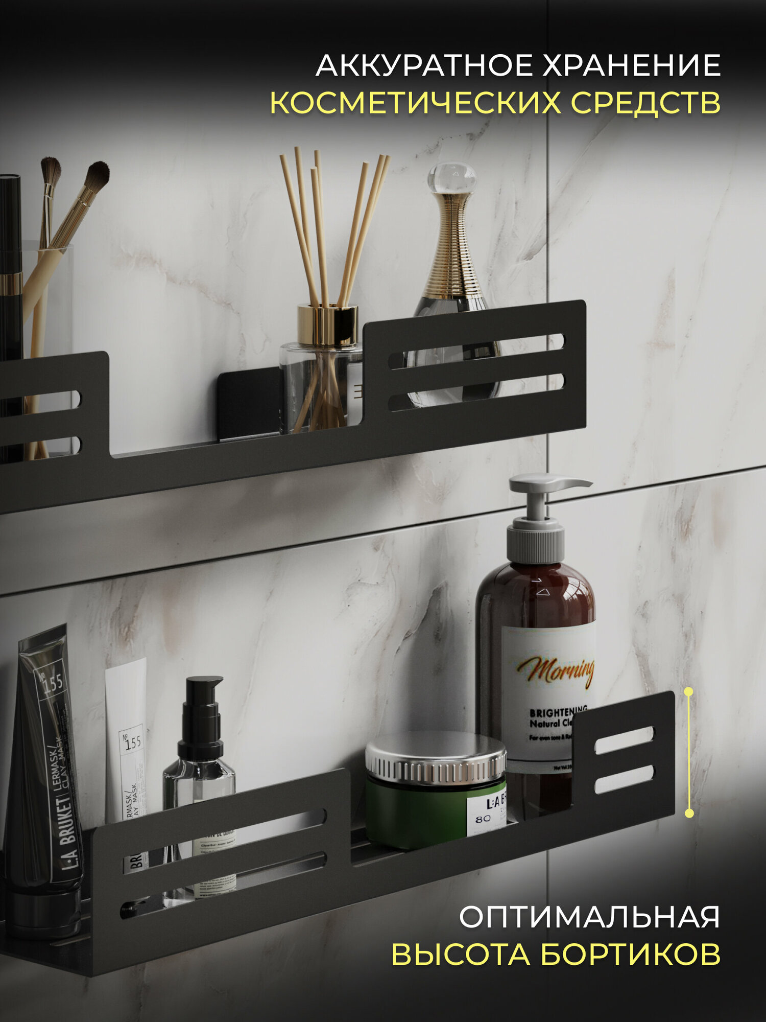 Полка для ванной настенная, металлическая, для полотенец, мыла, крема, косметики, шампуня, геля, бритвы, черная, 3 шт. интересное: