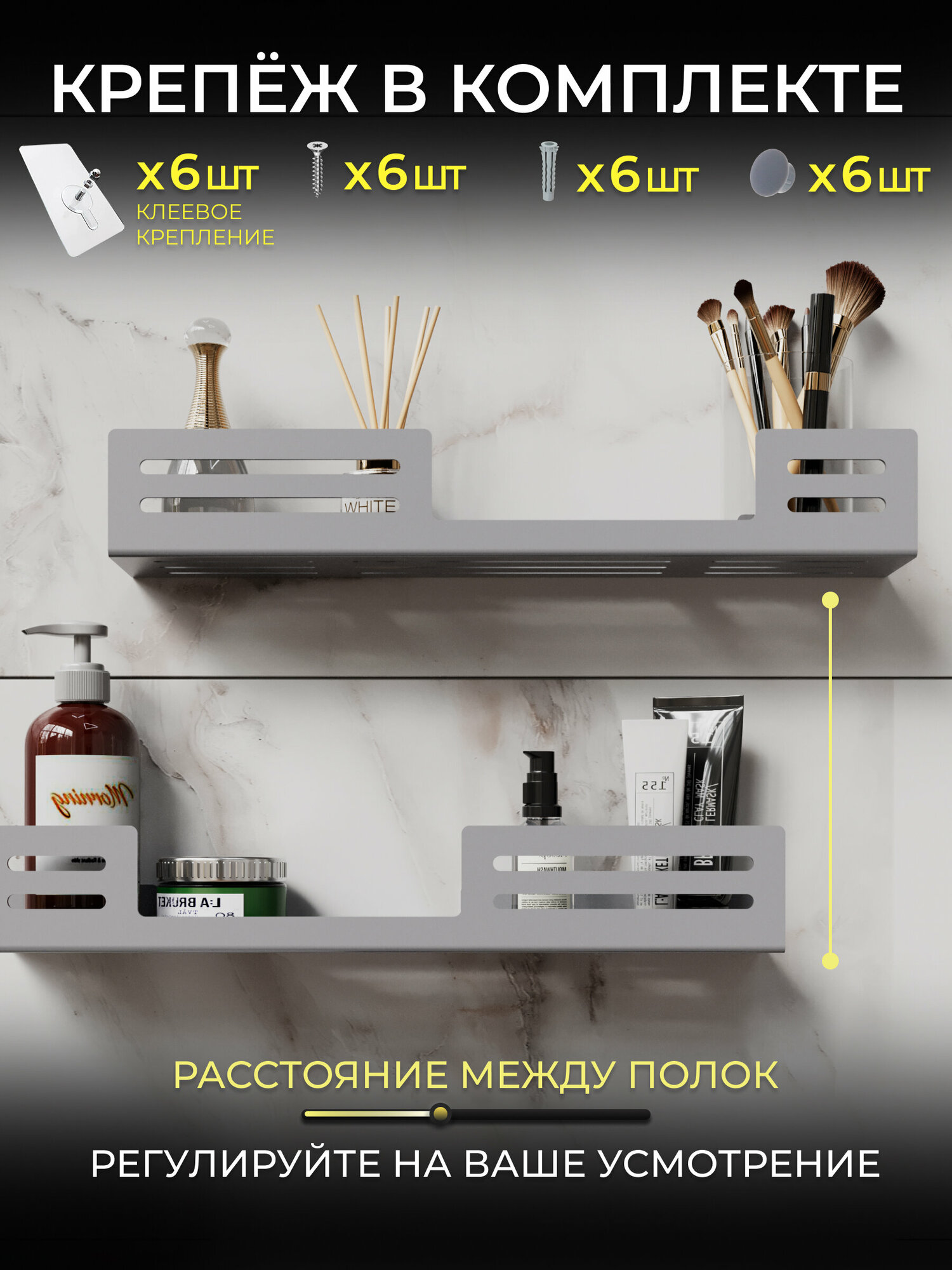 Купить Полка для ванной настенная, металлическая, для полотенец, мыла, крема, косметики, шампуня, геля, бритвы, серая, 3 шт.