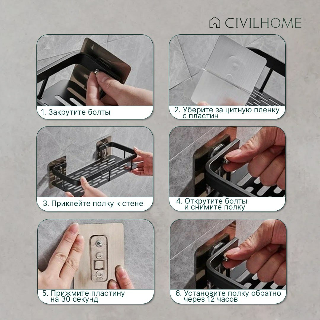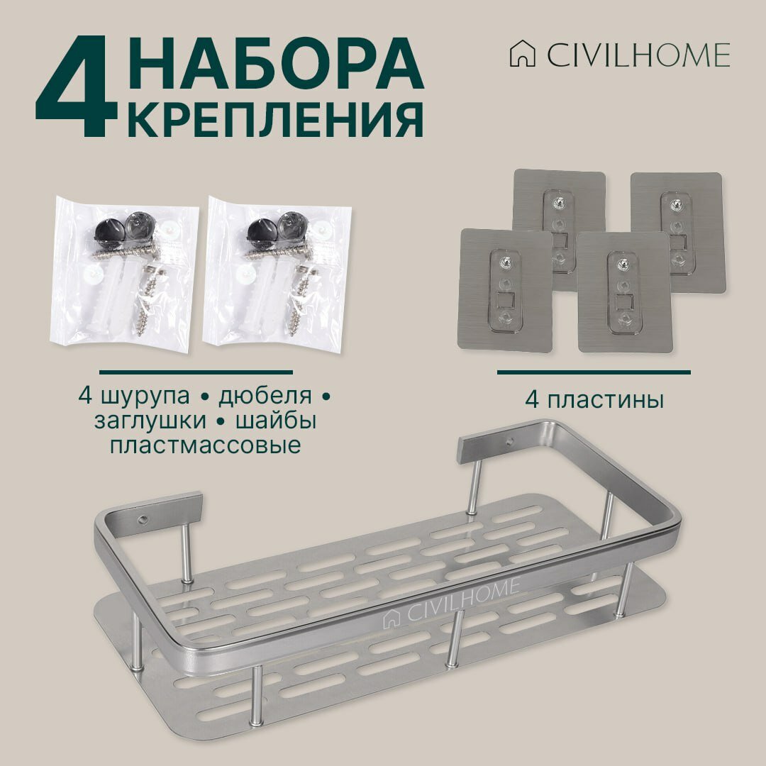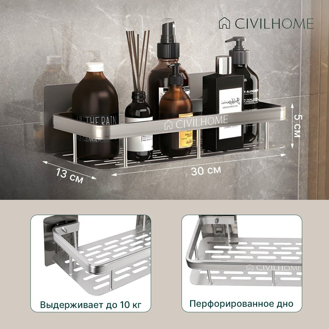 Полка настенная для ванной серебристая металл CIVILHOME интересное: