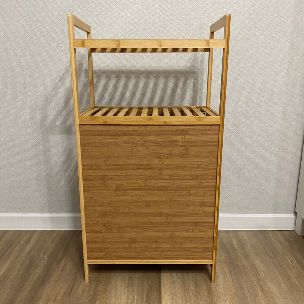 Стеллаж для ванной с корзиной для белья Bambuchka из бамбука, Этажерка для ванной, размер 80х30х95 см