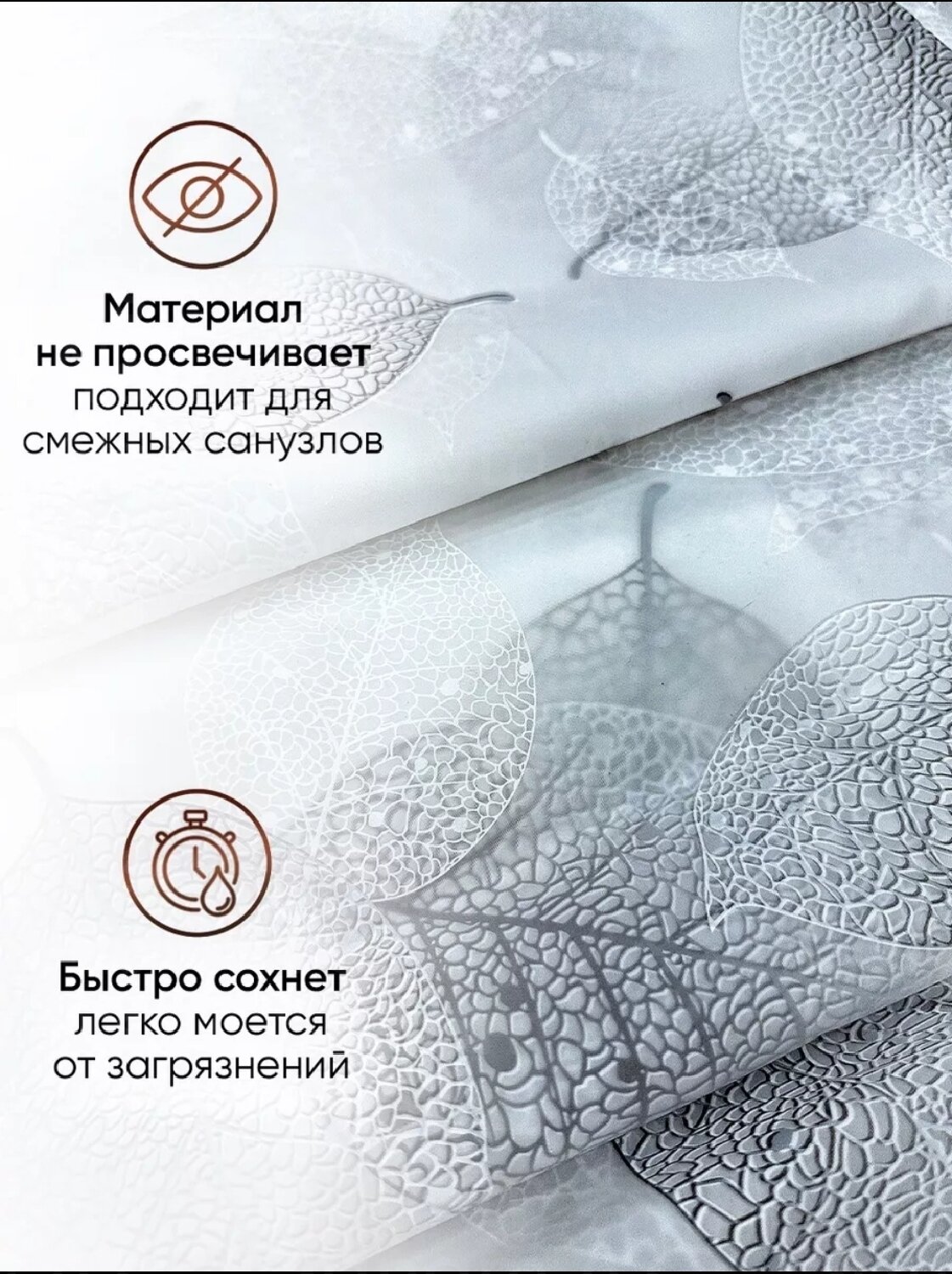 Купить Штора для ванной комнаты 180х180 см белая с листьями / Шторка для ванной комнаты и душа 180 см на 180 см / Кольца в комплекте / Материал PEVA