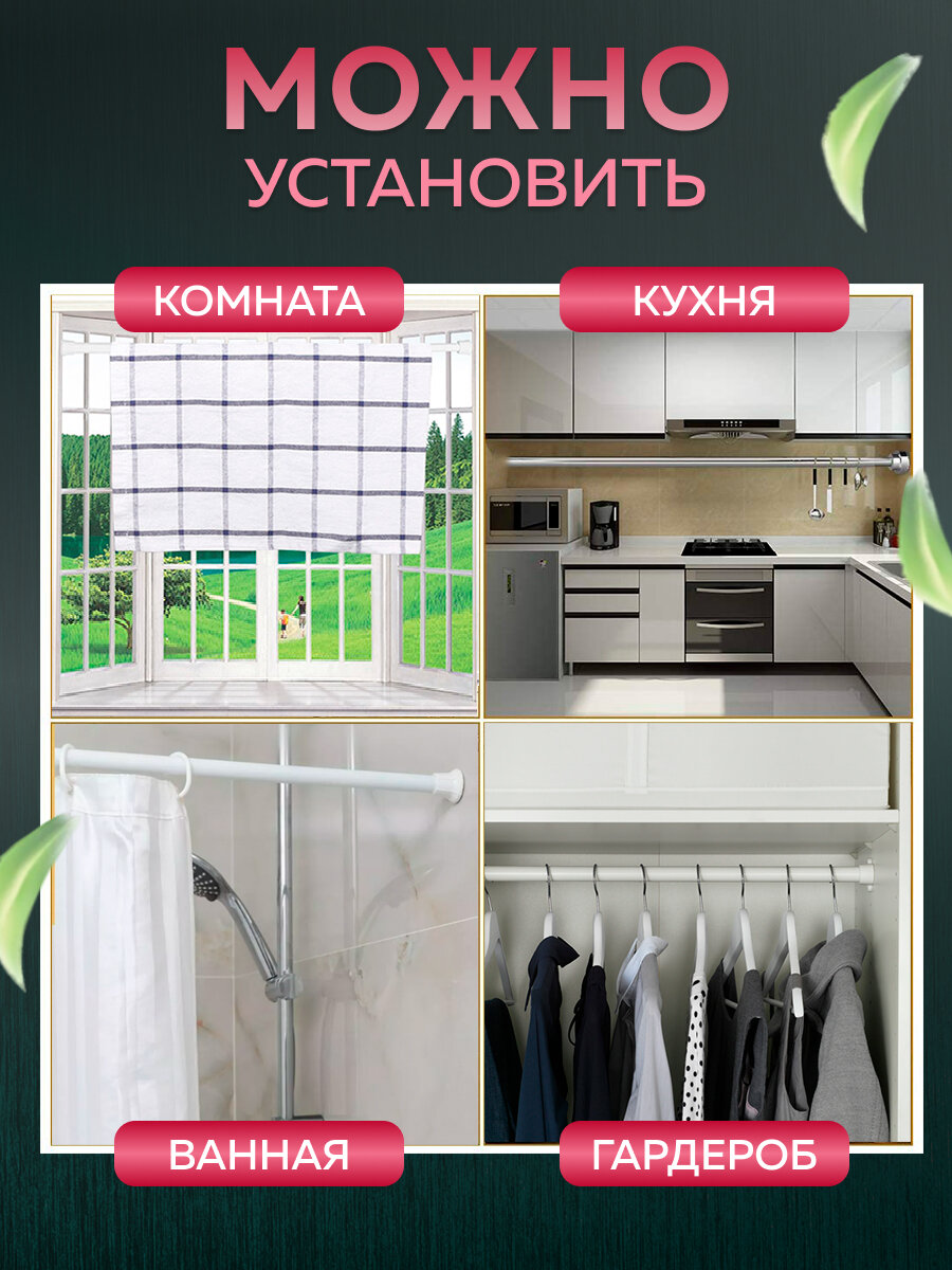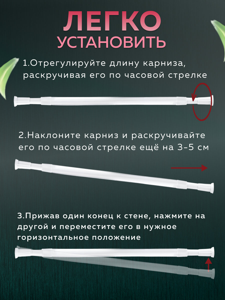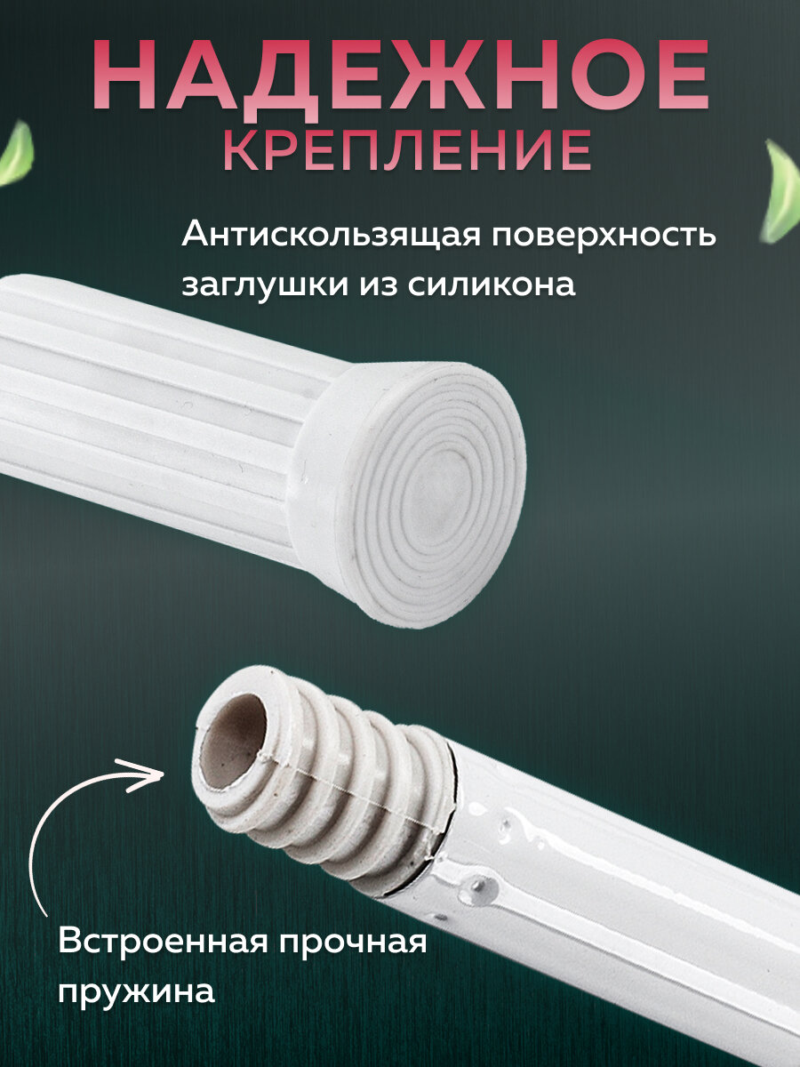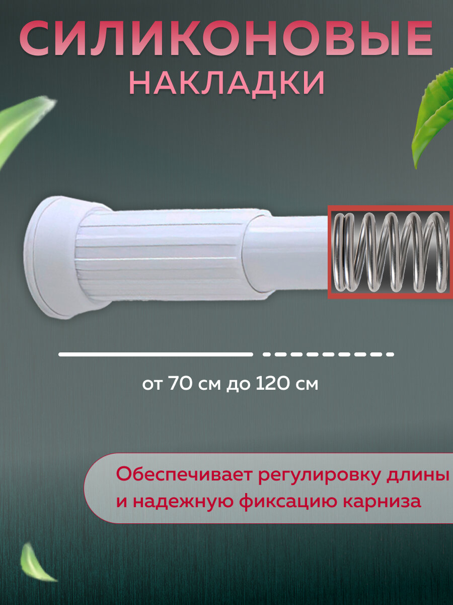 Карниз для ванной телескопический раздвижной белый Ridberg 70-120 см / Штанга для душа распорная