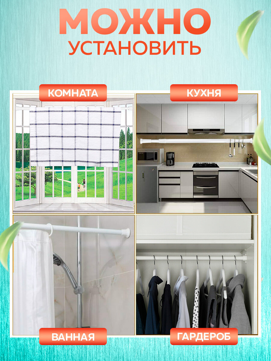 СохранитьКарниз для ванной телескопический раздвижной белый Ridberg 70-120 см / Штанга для душа распорная интересное: