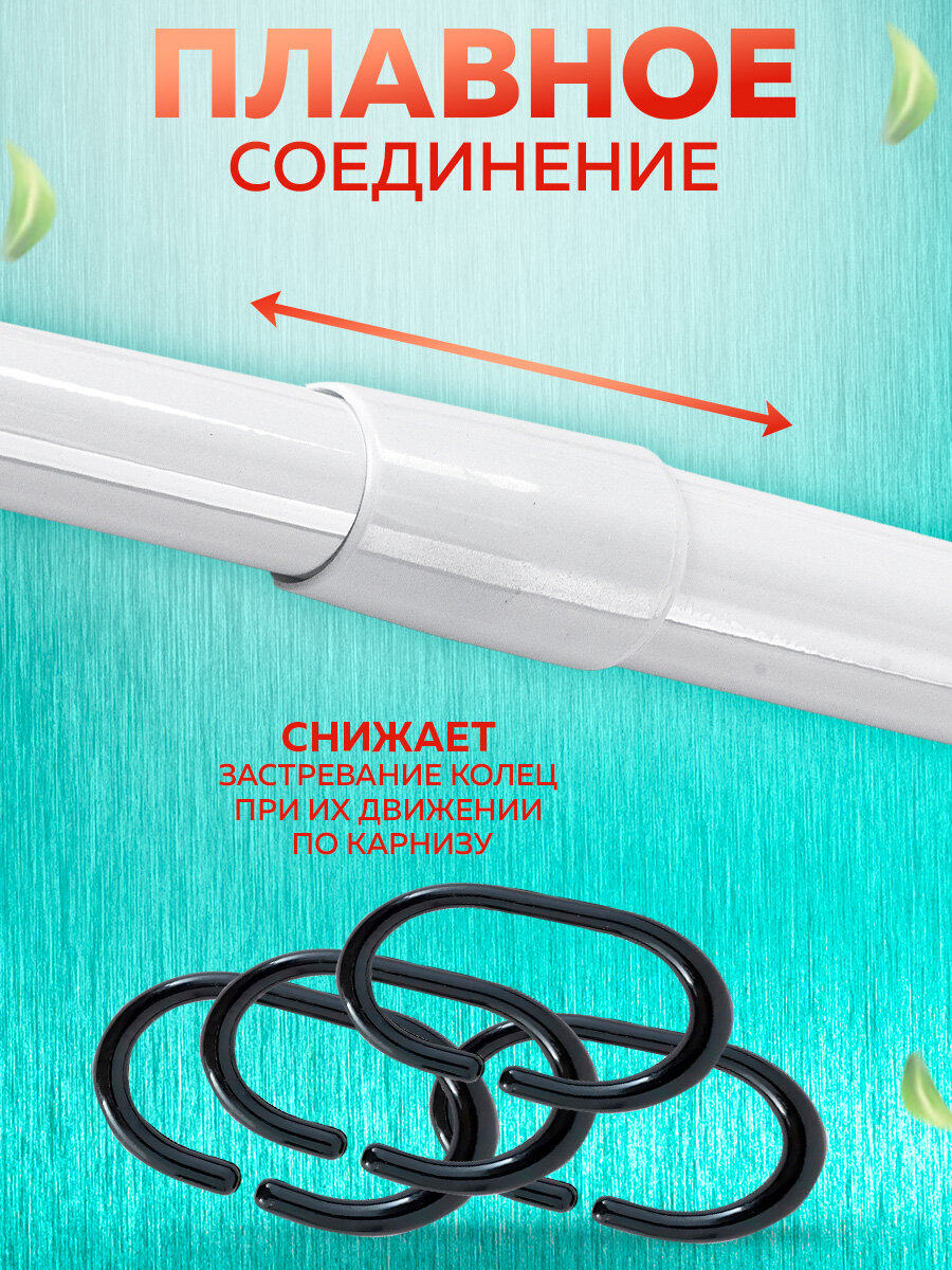 Карниз для ванной телескопический раздвижной белый Ridberg 110-200 см / Штанга для душа распорная
