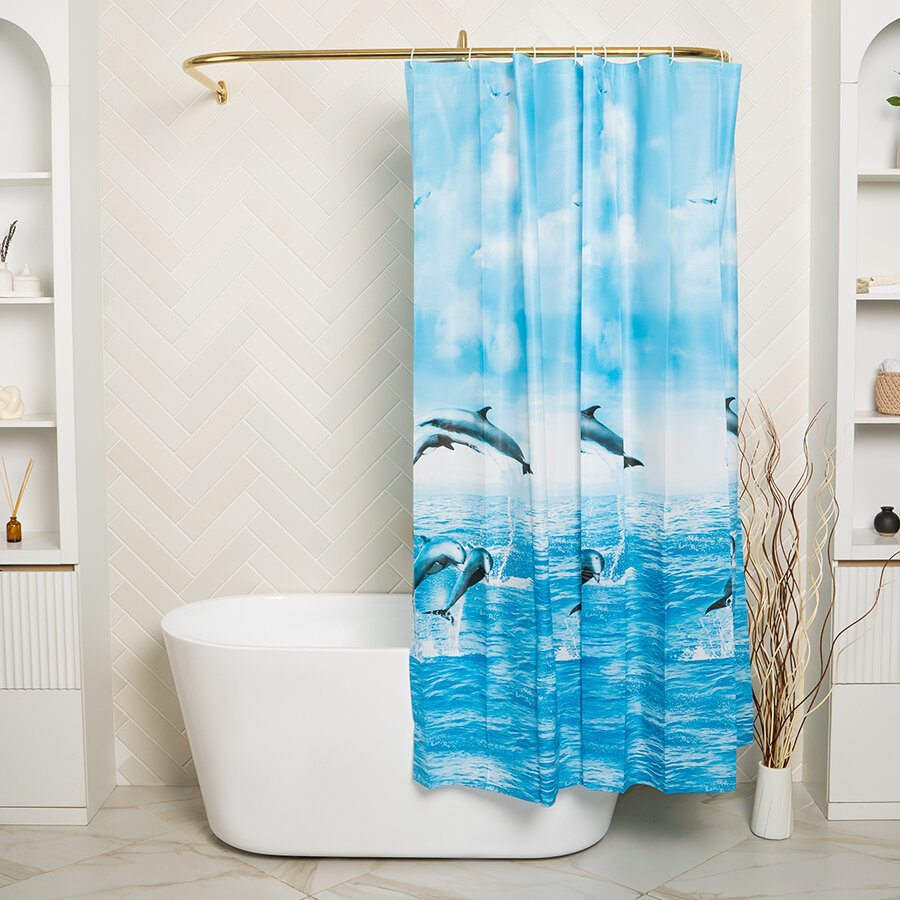 Штора для ванной "Дельфины", 180х180 см, PEVA интересное: