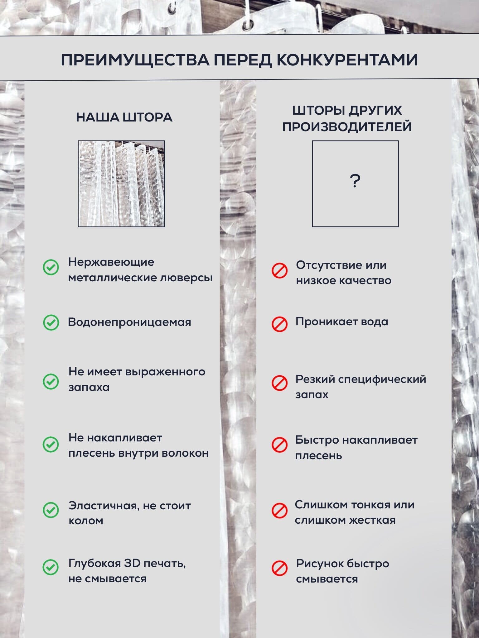 Штора для ванной комнаты прозрачная с 3D эффектом 180х200 см водонепроницаемая интересное: