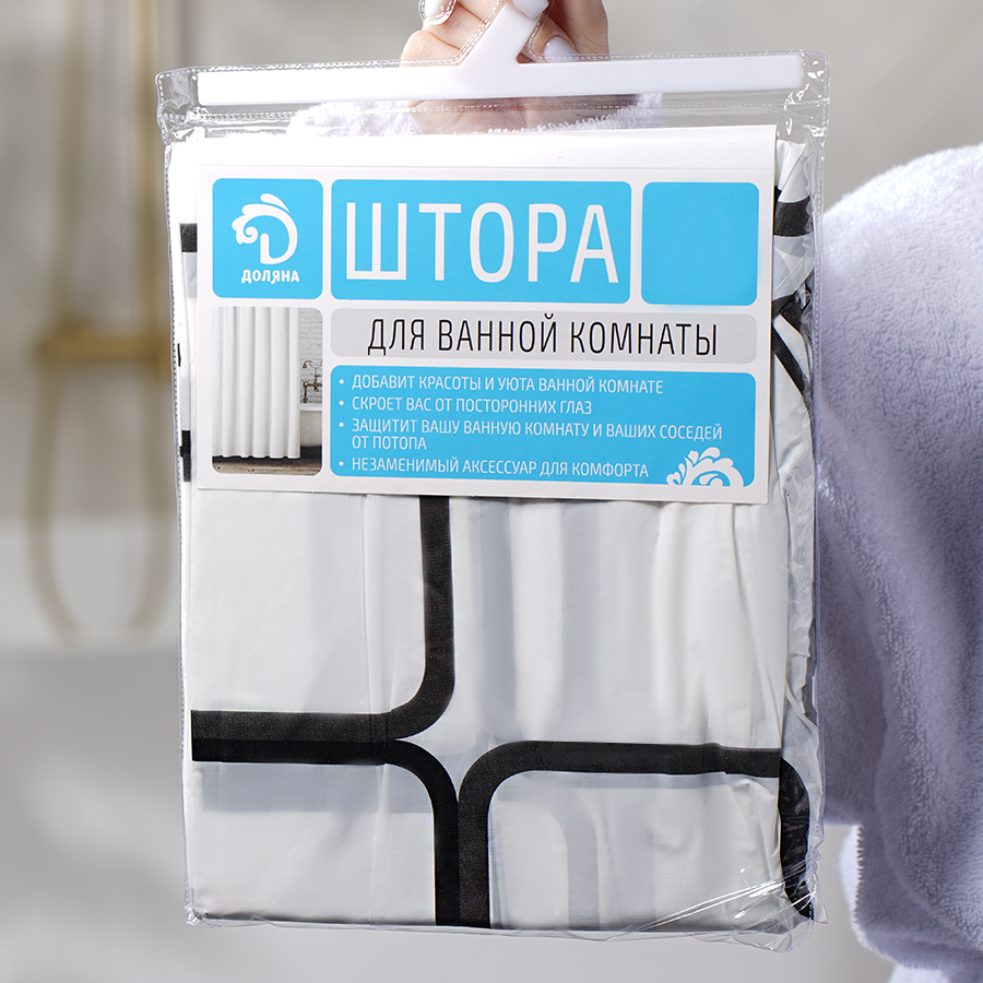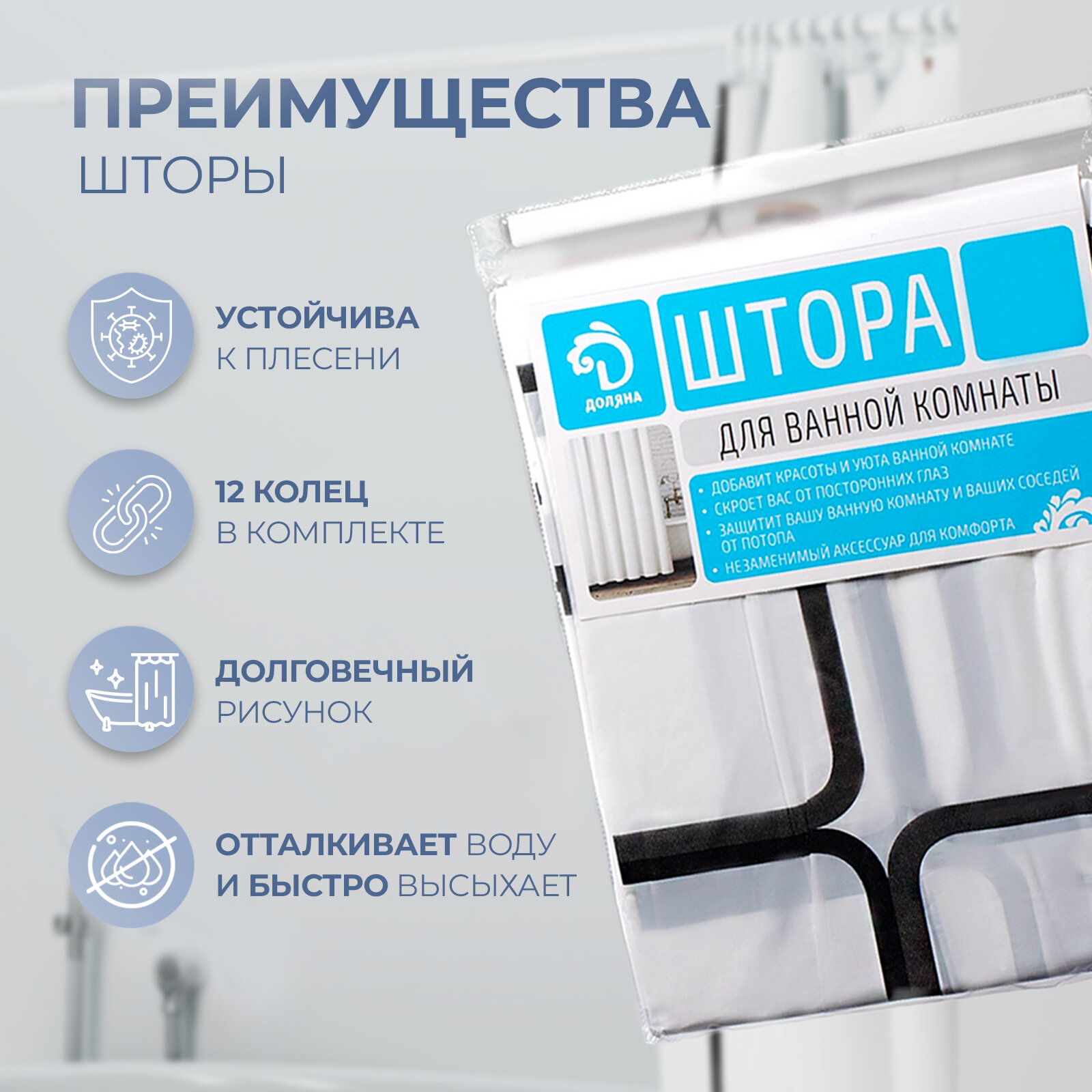 Штора для ванной комнаты Доляна «Квадраты», 180×180 см, PEVA интересное: