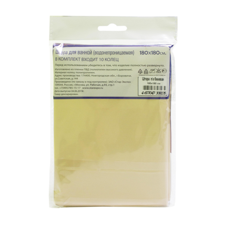 Штора для ванной 180х180 см бежевая