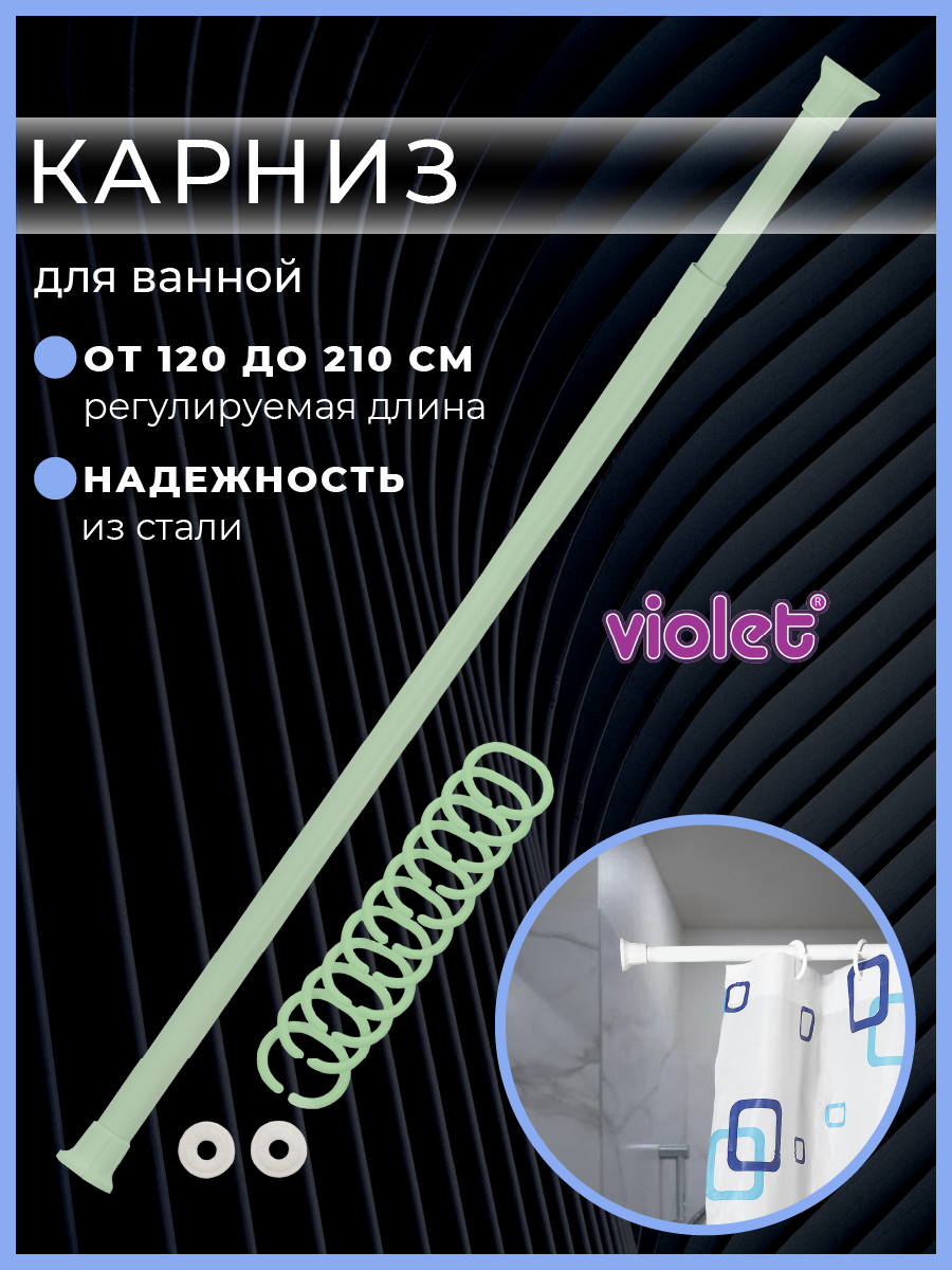 Карниз для занавески VIOLET в ванную комнату, раздвижной 210см салатовый