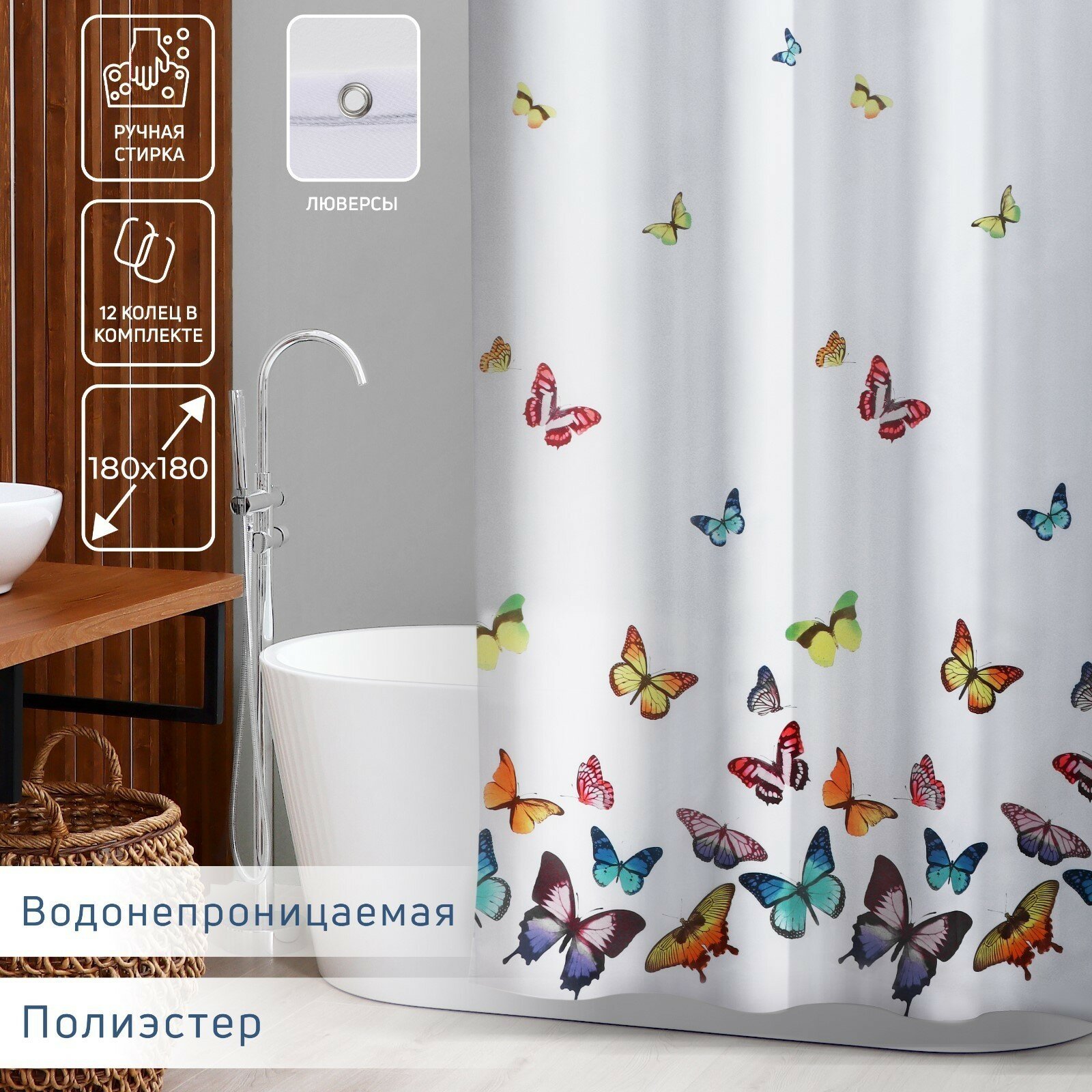 СохранитьШтора для ванной Доляна "Бабочки", 180х180 см, полиэстер интересное: