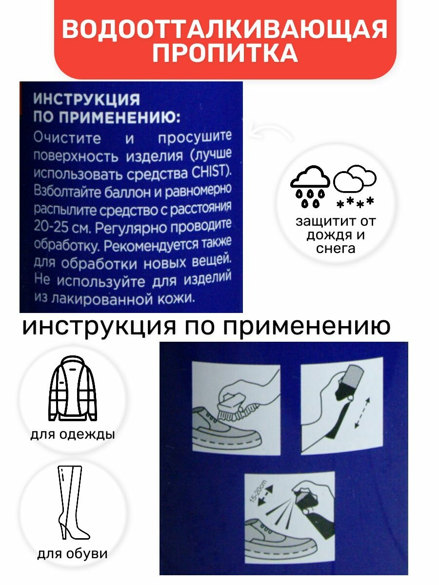 Ниже Вы можете прочитать отзывы на Водоотталкивающая пропитка, спрей для обуви и одежды, ознакомится с подробными характеристиками, посмотреть интересные обзоры и фотографии на Водоотталкивающая пропитка, спрей для обуви и одежды.