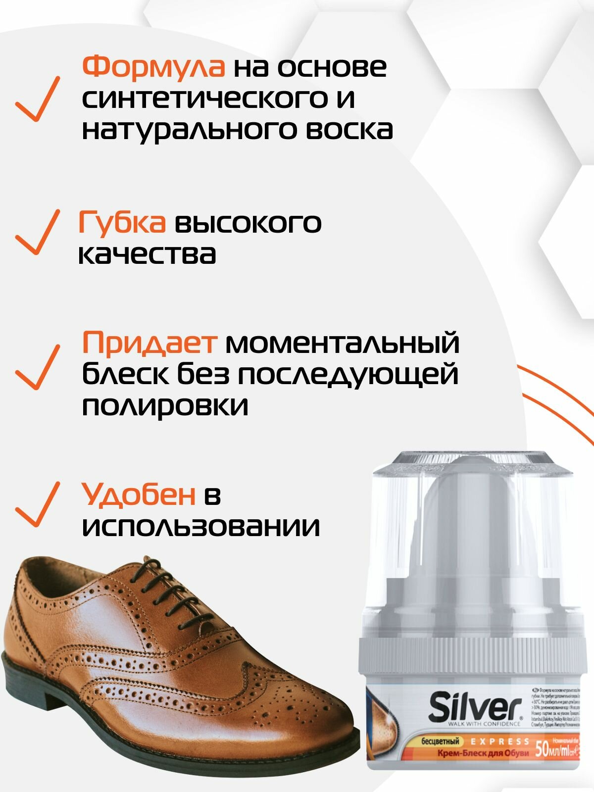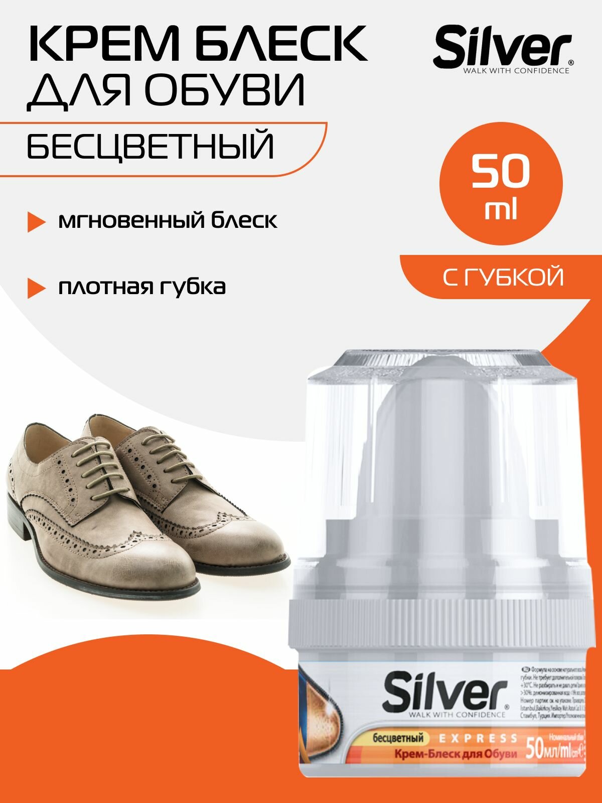 Купить SILVER крем блеск краска для обуви уход с губкой бесцветный 50 мл