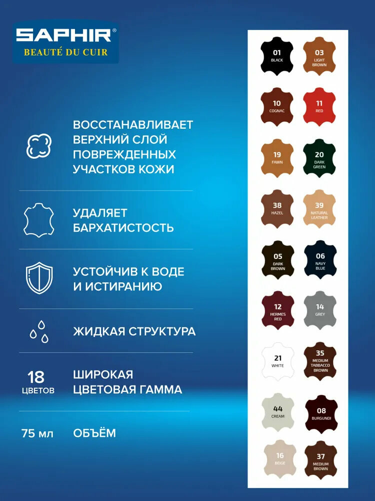 0851 Восстановитель кожи (жидкая кожа) Saphir Creme Renovatrice, Цвет Saphir 39 Natural leather (Натуральная кожа)