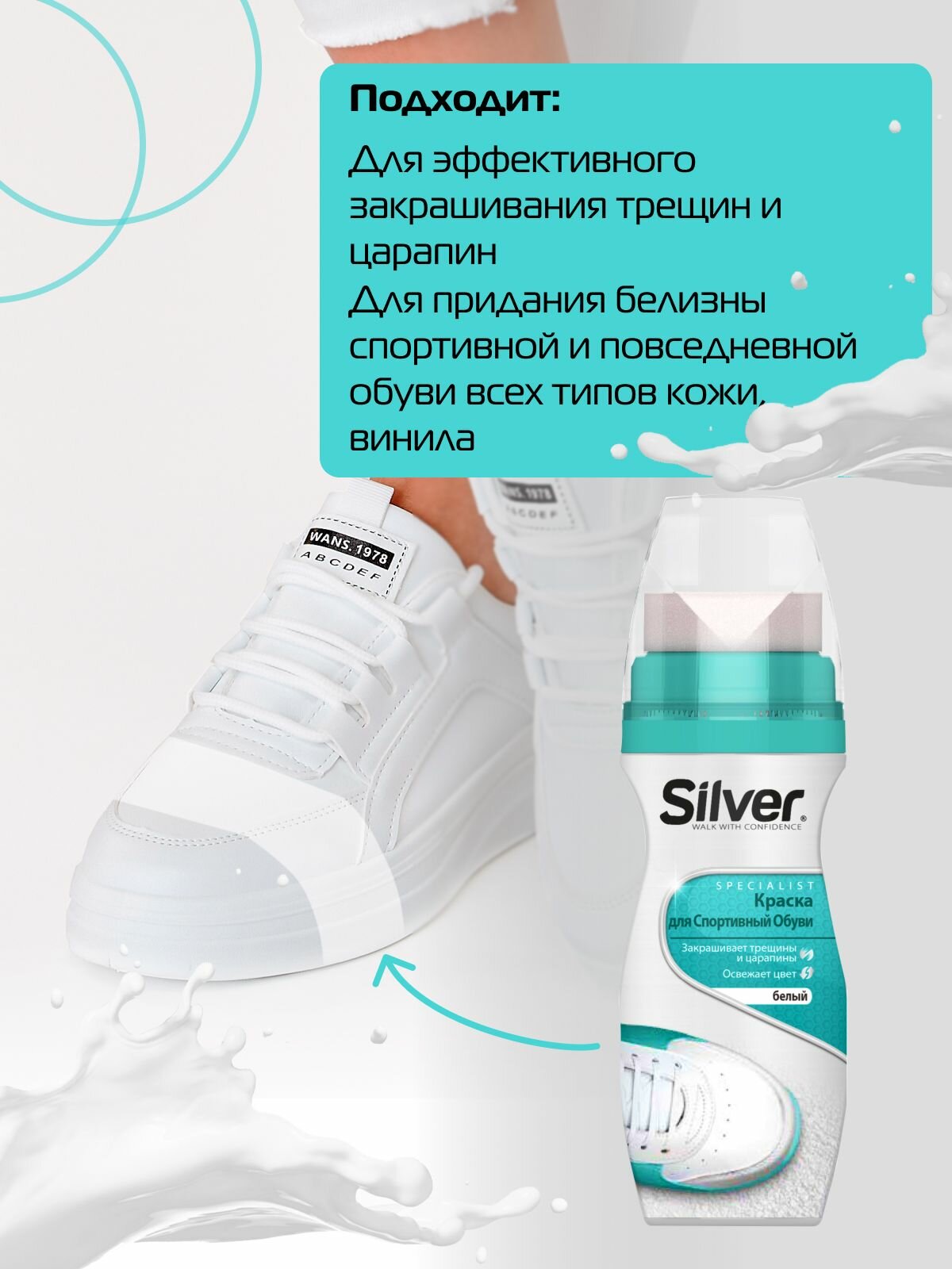 Silver Жидкая крем-краска для спортивной обуви белый