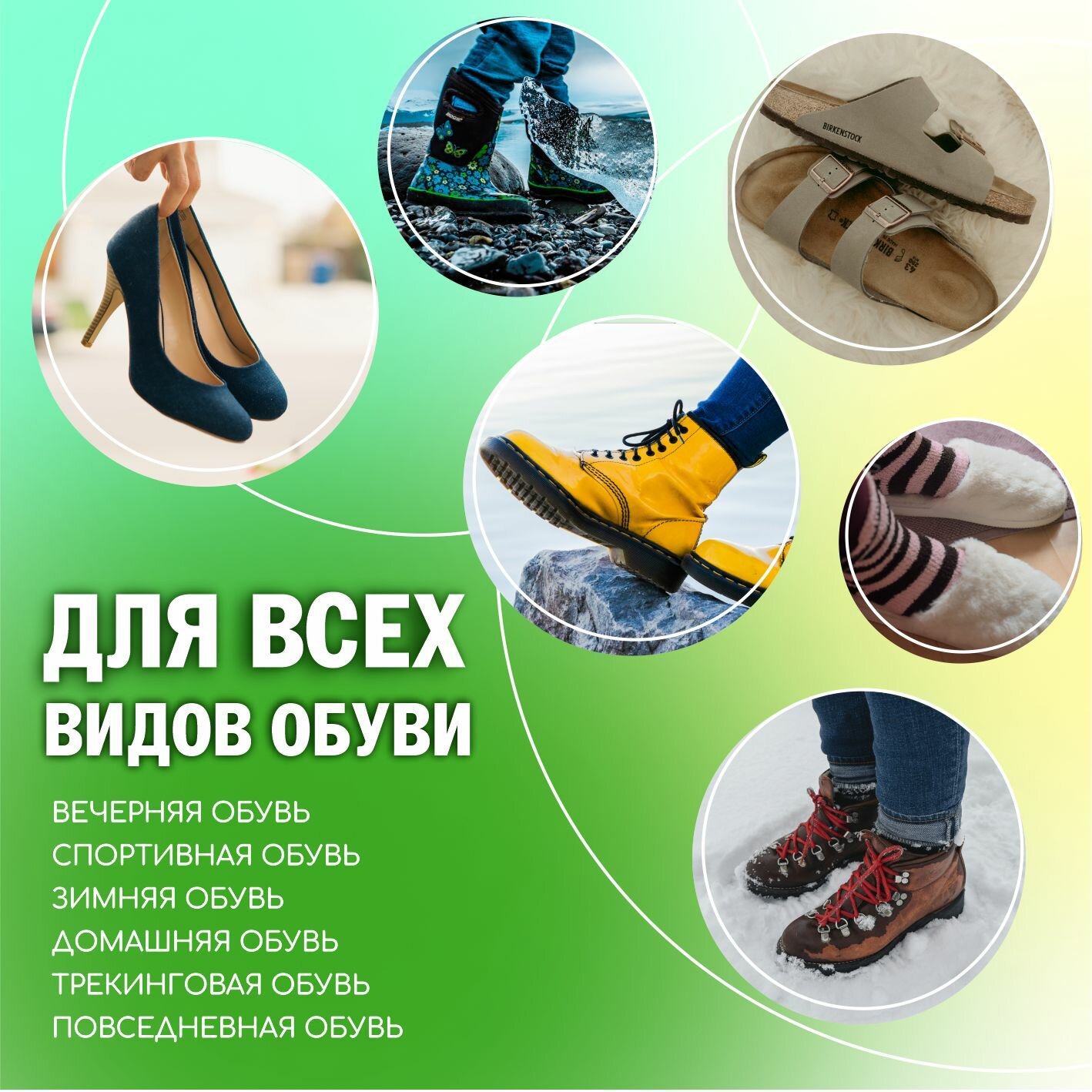 | Назначение | гладкая кожа / замша / искусственная кожа / лакированная кожа / нубук / текстиль |