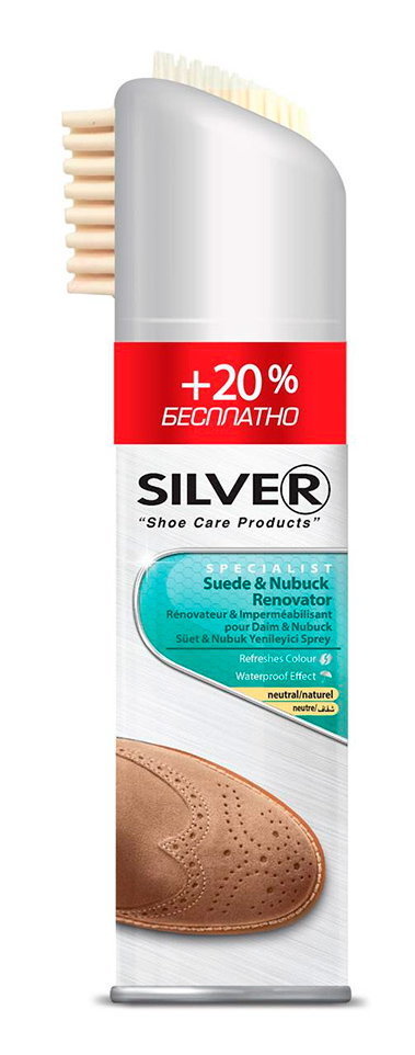 SILVER Спрей-восстановитель для нубука и замши 3в1 с каучуковой щёткой натуральный, 300мл интересное: