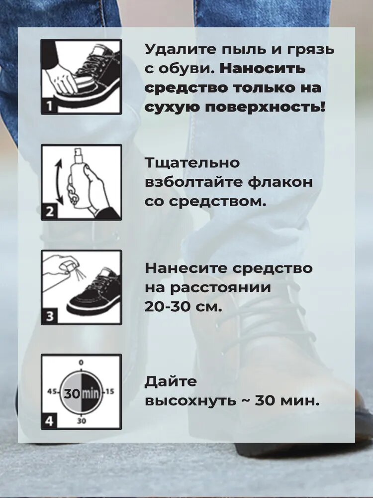| Дополнительная информация | водоотталкивающая пропитка для обуви и изделий из жированных кож. Высокие технологии позволяют защитить изделия от агрессивного воздействия окружающей среды. После обработки материал покрывается защитным слоем и становится влагонепроницаемым и защищенным от грязи |