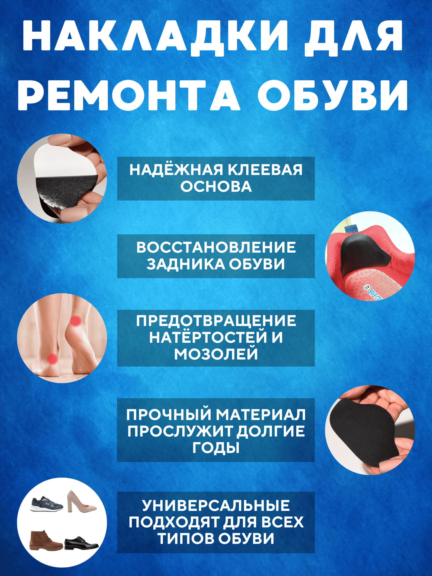 | Тип | накладки для ремонта задников обуви |