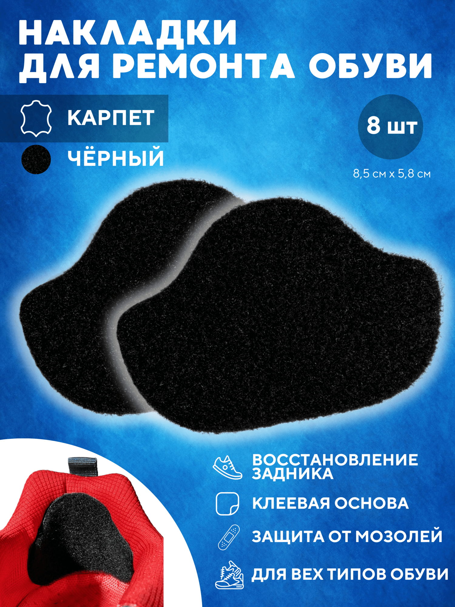 Накладки самоклеящиеся для ремонта задников обуви, карпет, цвет черный