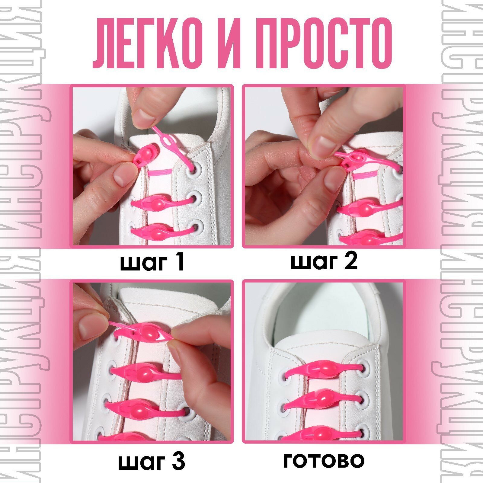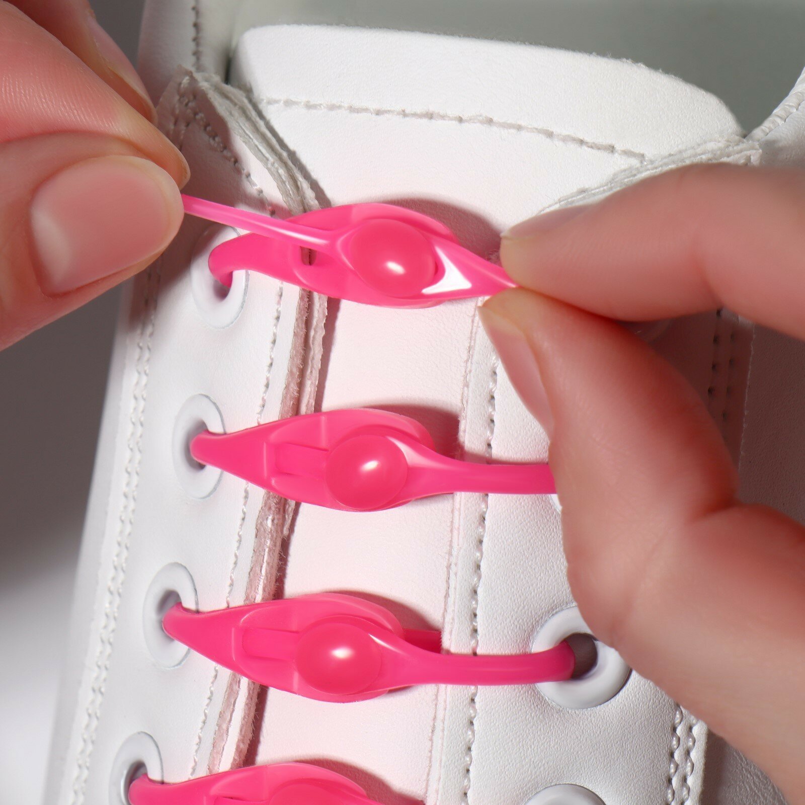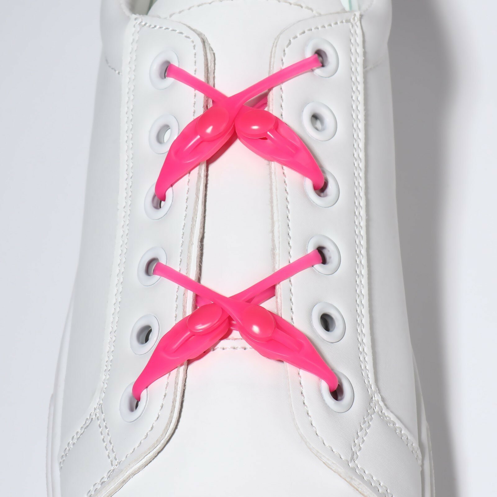Набор шнурков для обуви, 6 шт, силиконовые, полукруглые, на застёжке, 4 мм, 11 см, цвет красный, 4 штуки